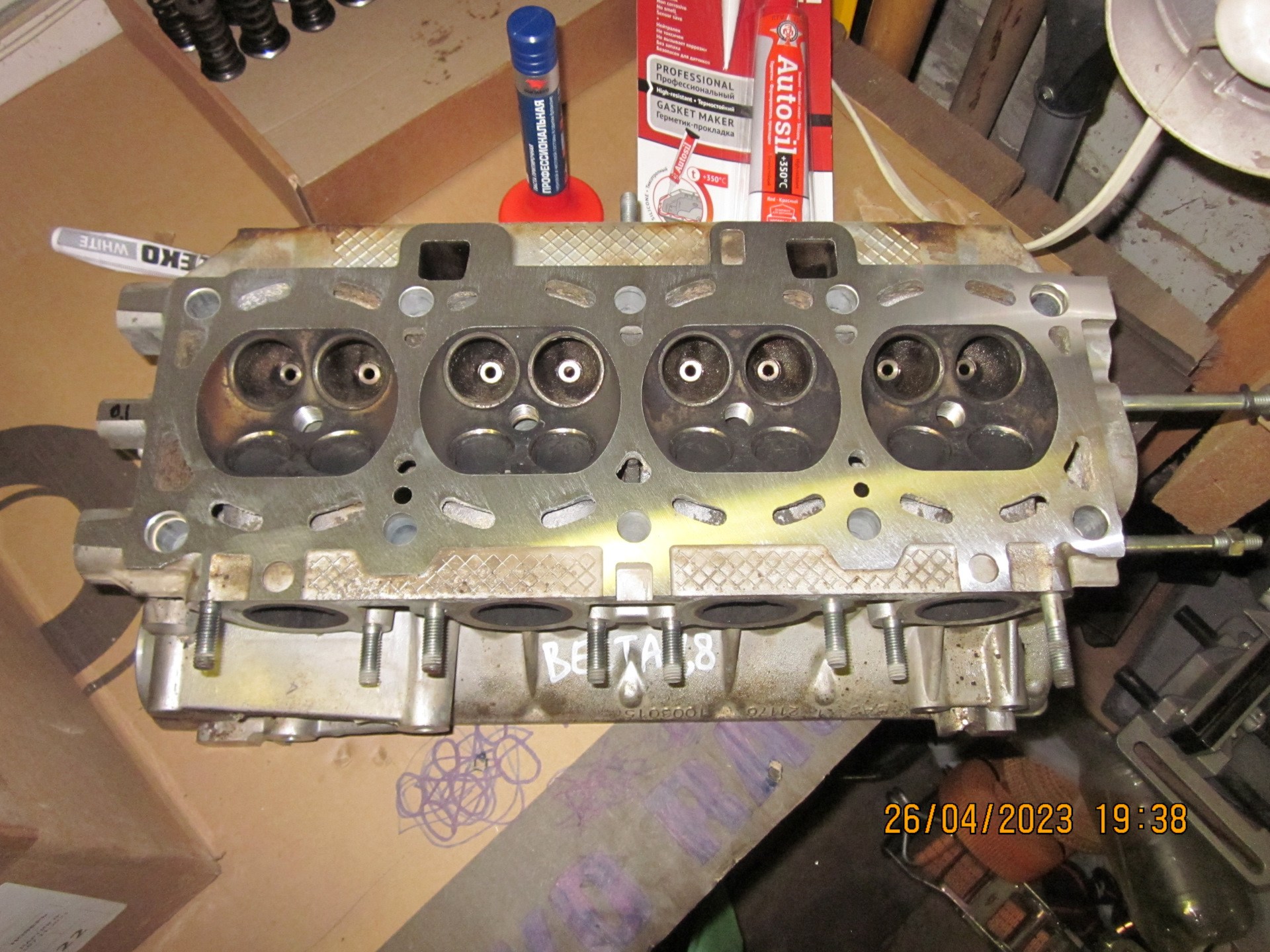 Вернувшись в Саров, продолжил работы над ГБЦ. Немало нервов потрепал мне процесс удаления заводского анаэробного герметика «Локтайт». Да, я знаю о его преимуществах перед силиконовым герметиком. Но вспоминая про то, что и клапанная крышка была по периметру почти вся запотевшая, и во всех 4-ёх свечных колодцах было масло, в 3,14зду такие «герметики»!