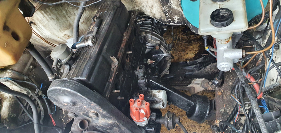 Мотор стоит, кпп стоит, мотор крутится. Ставим коллектор, потом примеряем проводку, звоним ее.
