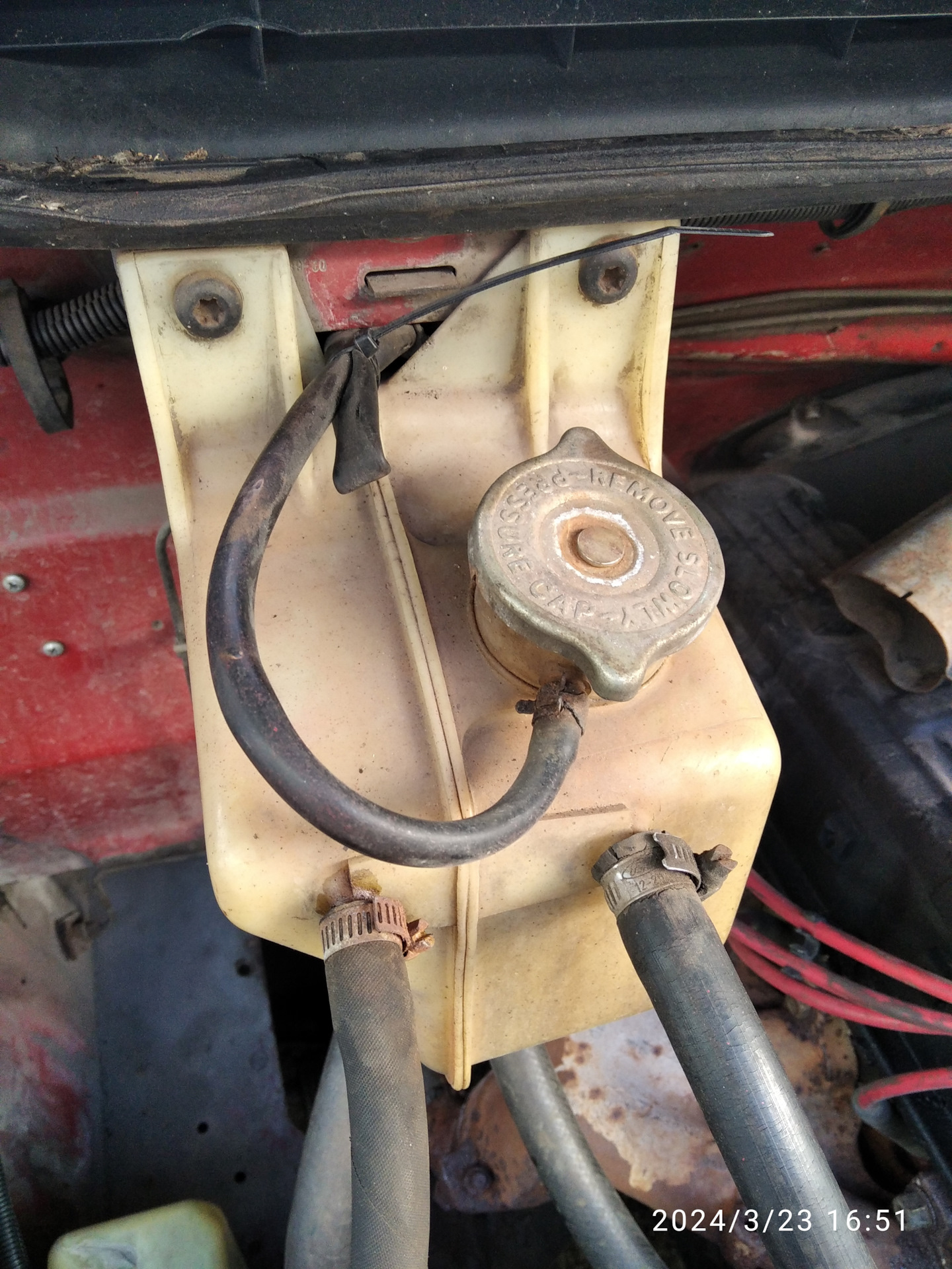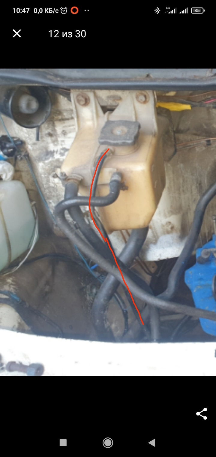 напрямую в радик уходит из бачка — на твоем фото левый верхний, в радик он должен приходит в единственный тонкий штуцер, если смотреть на машину спереди — слева сверху, но он порой у людей обламывается, его глушат