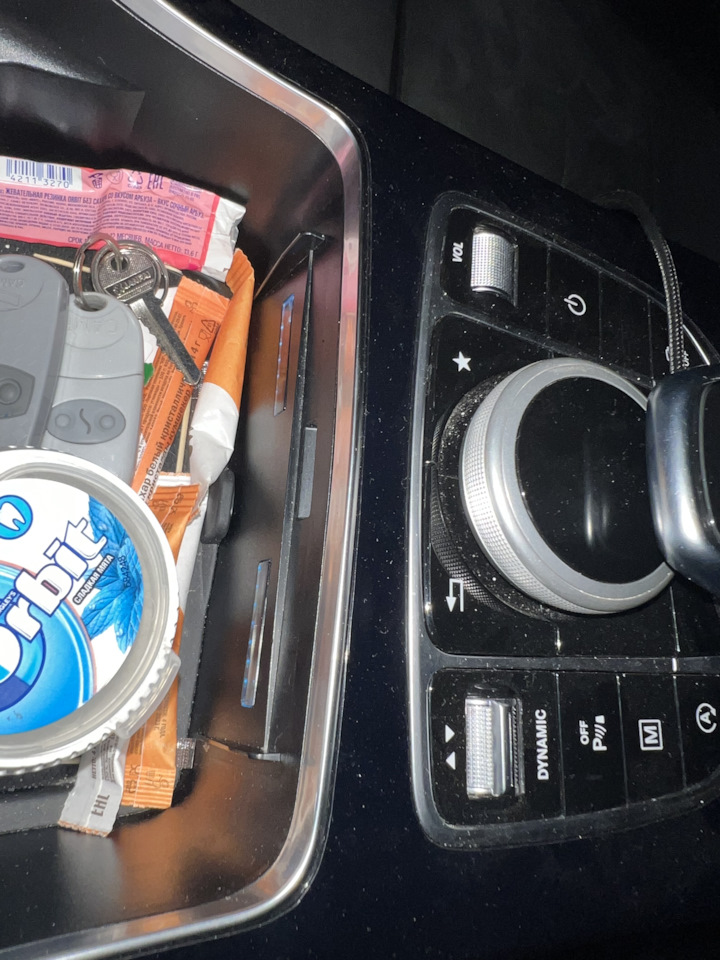 Машина досталась с очень потертой центральной консолью, она когда-то была черная глянцевая, но практически 100 тыс км на нее кидали ключи и вещи. Иначе объяснить столько царапин я не могу.