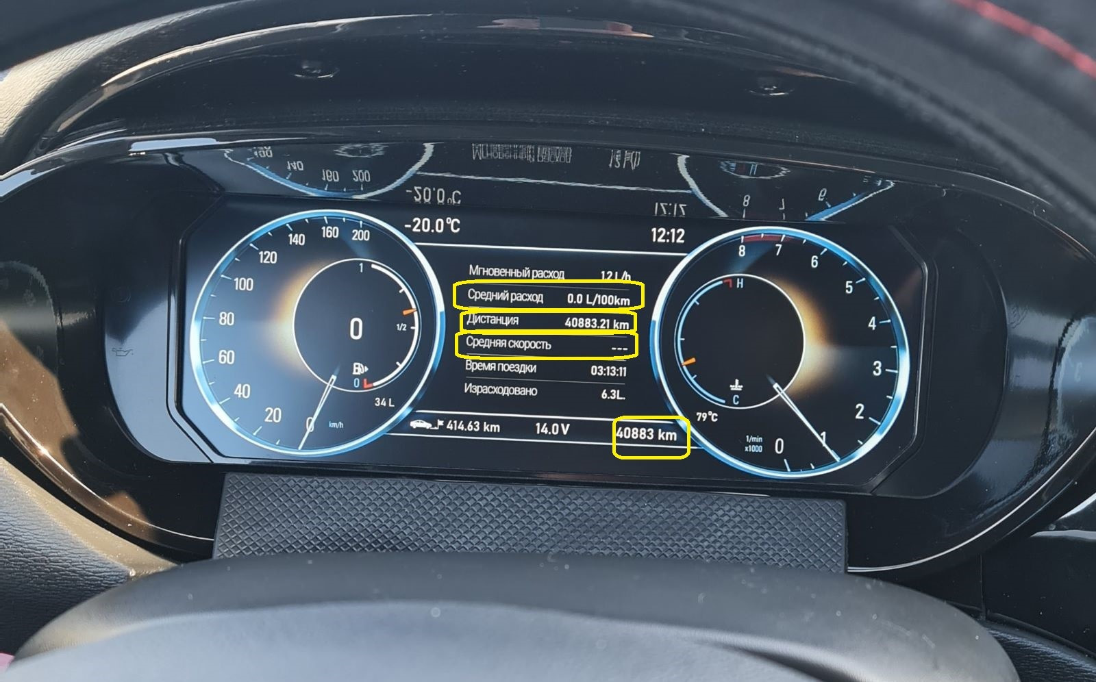 Ну думаю новая, надо время, хотя на родной приборке дневной пробег я мог сразу увидеть и сбросить, естественно средний расход и среднею скорость то же начинали показывать не мгновенно, а через 2-5 км пробега. На третий день показался средний расход и средняя скорость, обрадовался, ну думаю настроилась все ок, хотя часы убежали уже в отставании на 3 мин (при этом приборка подключена к инету по раздаче с телефона). Каждый день эксплуатировать авто не получается в связи с графиком основной работы, так что в неделю выезжаю на два три дня. Как-то придя в гараж после 5 дней «простоя», завел авто, приборка не запустилась… Заглушил, включал выключал зажигание – «ноль», пока не обнулил снятием клеммы аккумулятора, только после этого включилась.
