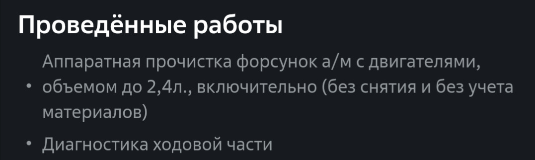 Давно я сюда ничего не писал, буду подкидывать посты согласно истории обслуживания.От 29.03.2023После офф. дилера заехал на бесплатную проверку ходовой во всеми известный оранжевый сервис, заодно рекомендовали прочистку форсунок