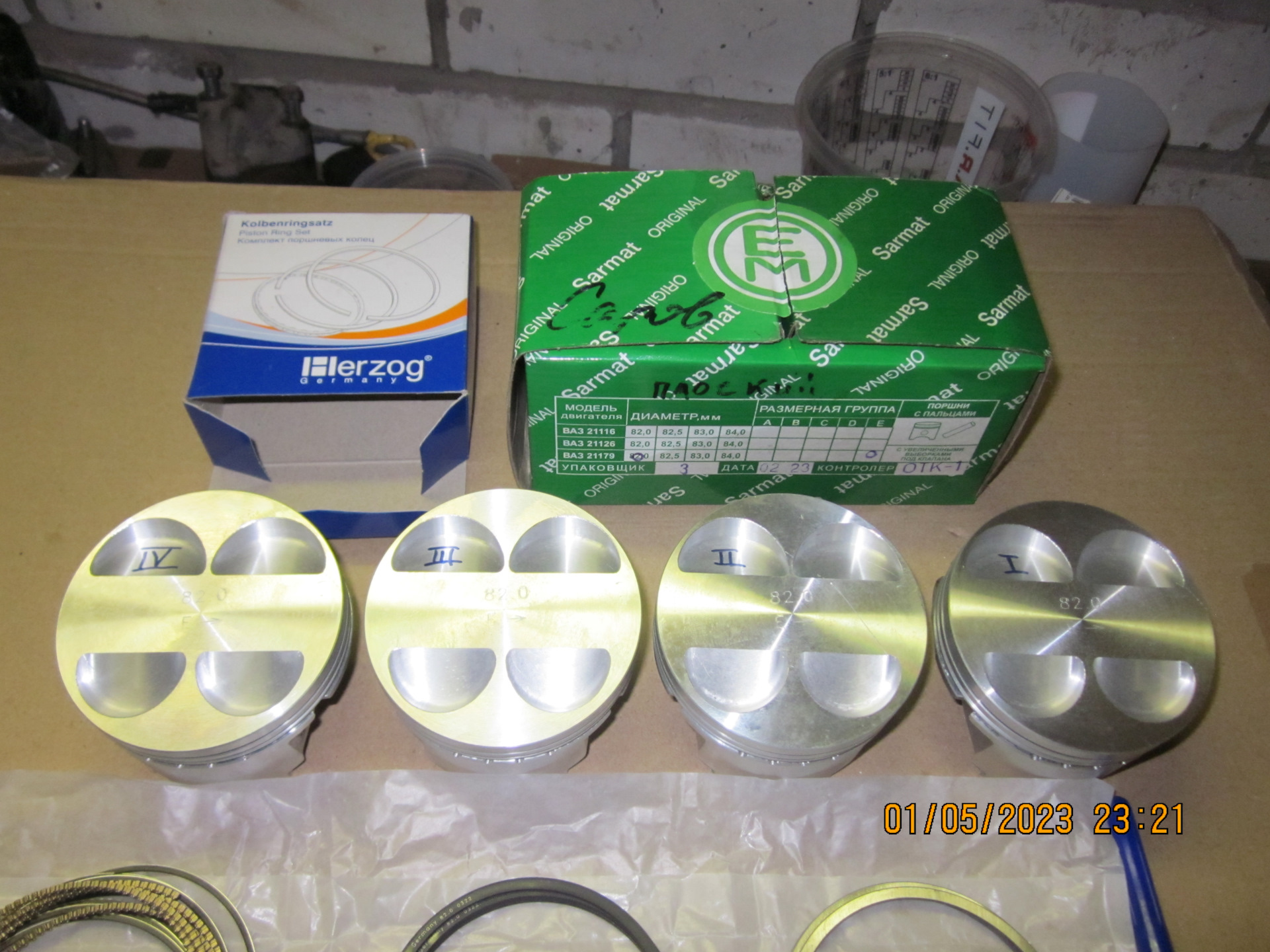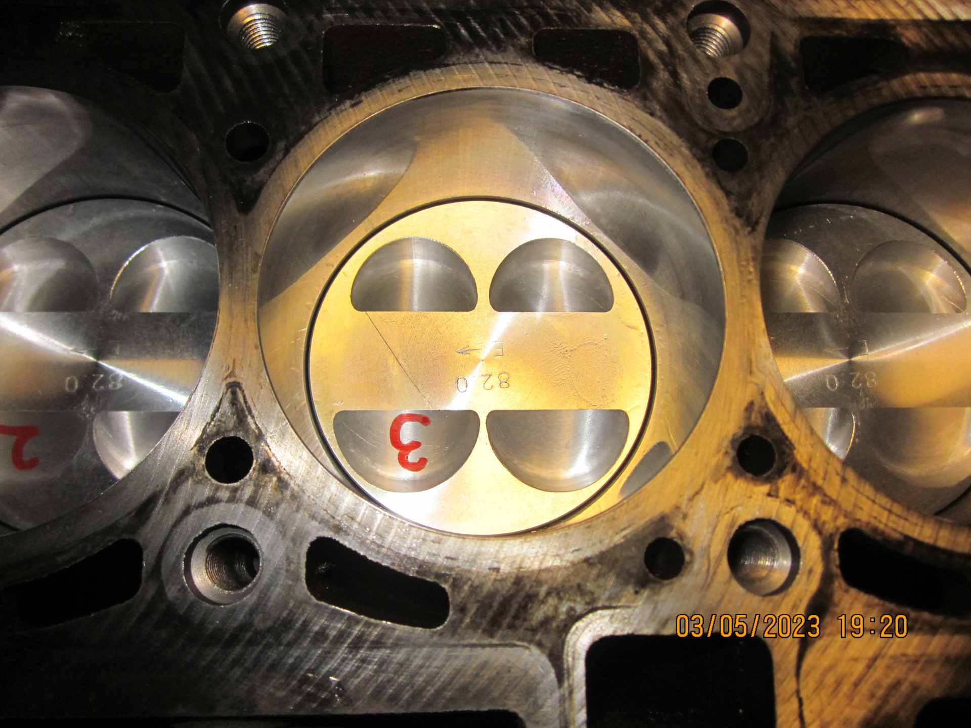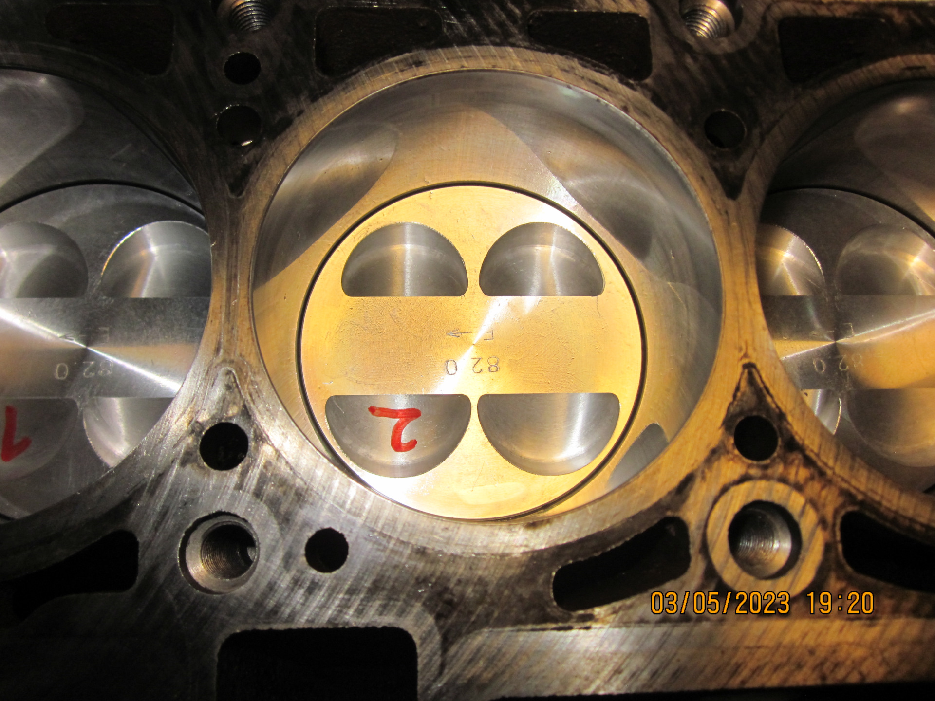 Провёл что-то вроде селективной подборки поршней к цилиндрам: вставлял поршни в разные цилиндры, и пытался понять, какой поршень куда лучше ставить. Потратил уйму времени, в итоге пришёл к выводу, что поршни практически одинаковые по размерам, как, впрочем, и цилиндры.