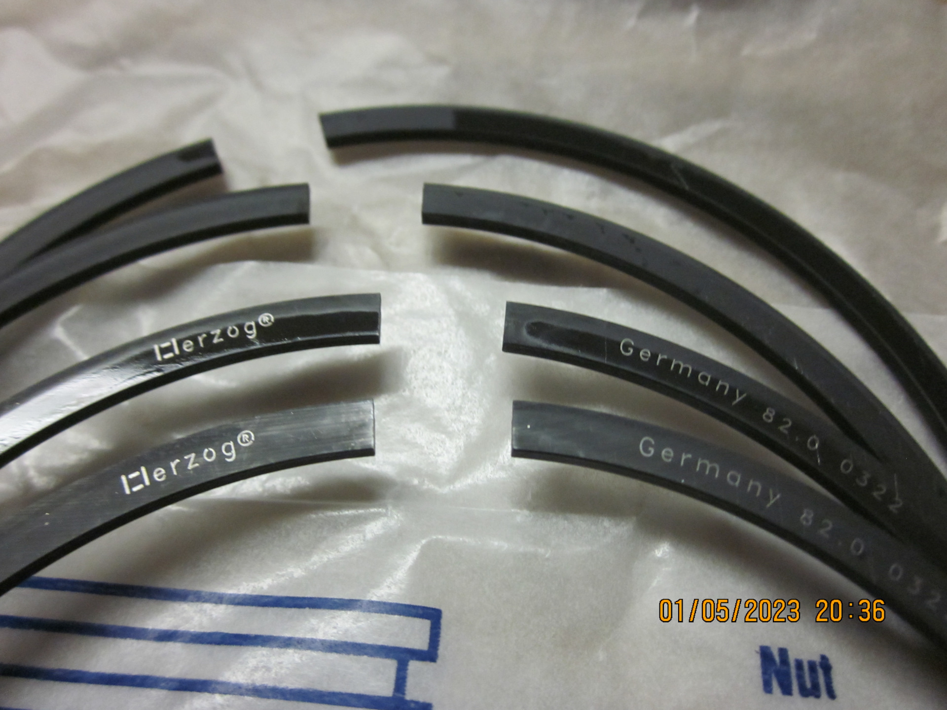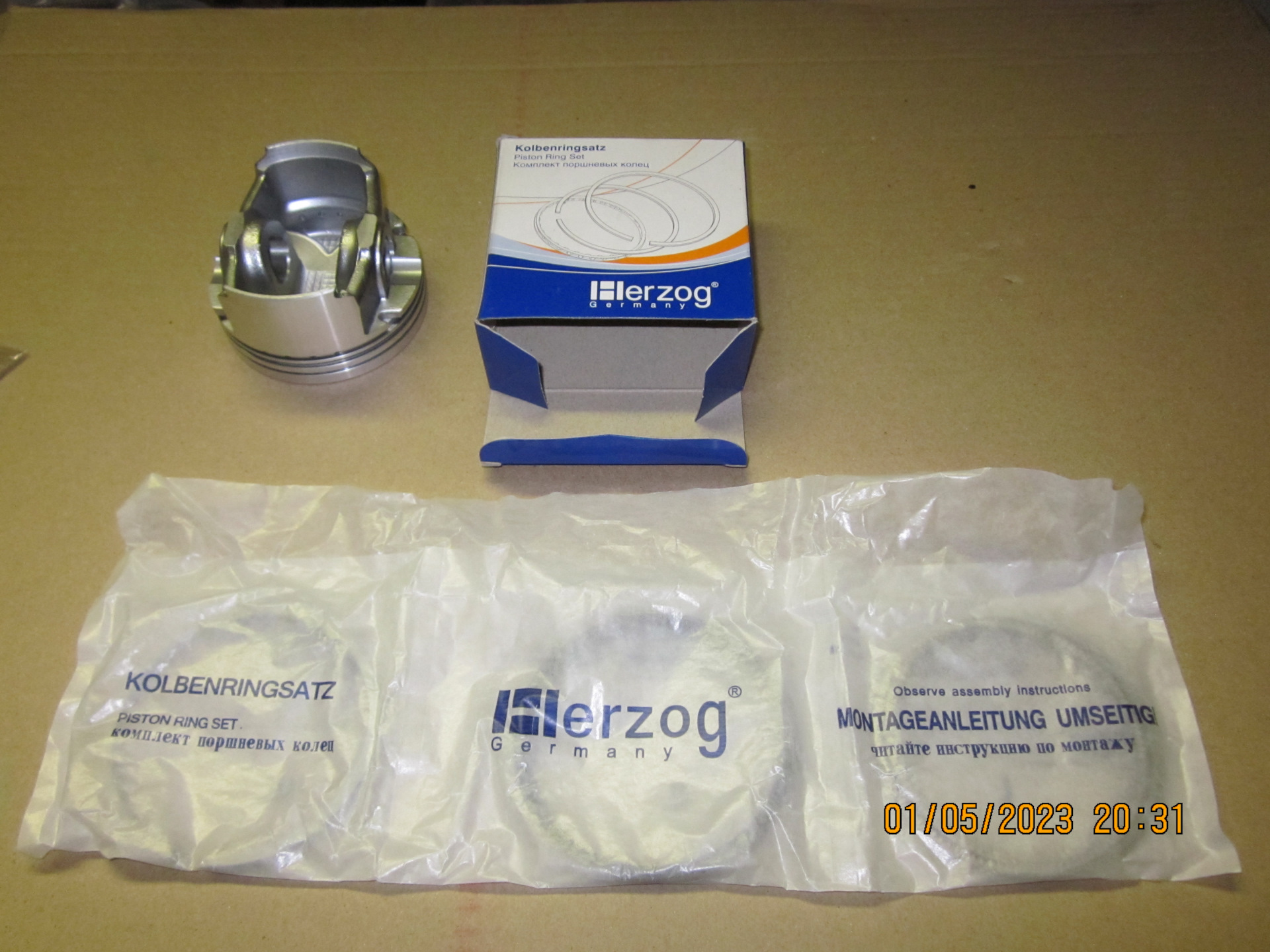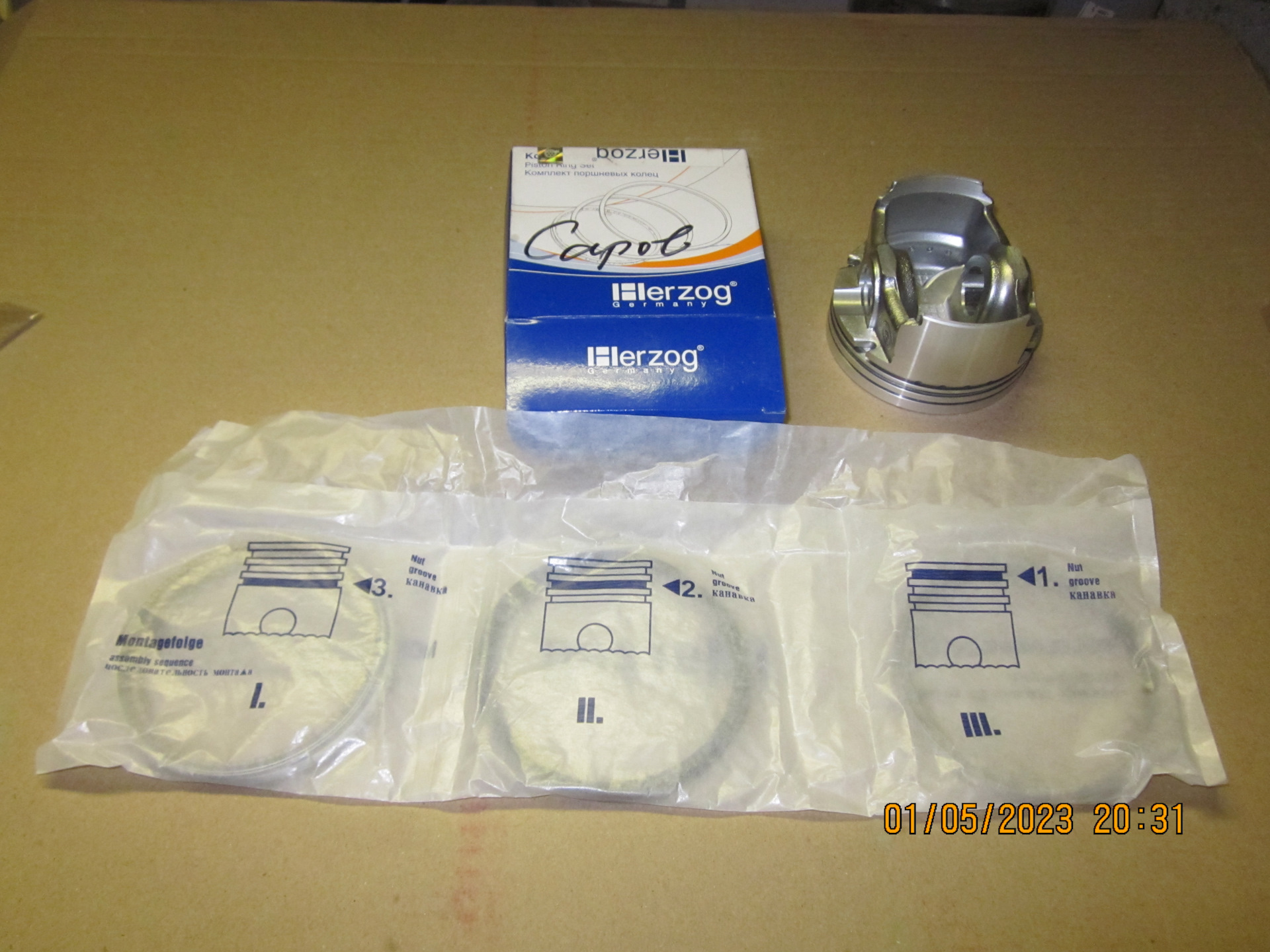 Поршневые кольца HERZOG, маслосъёмные кольца наборного типа с одним фигурным радиально-осевым расширителем (стоковые были коробчатые); нижние (толстые) компрессионные кольца скребкового типа (стоковые были обычные).