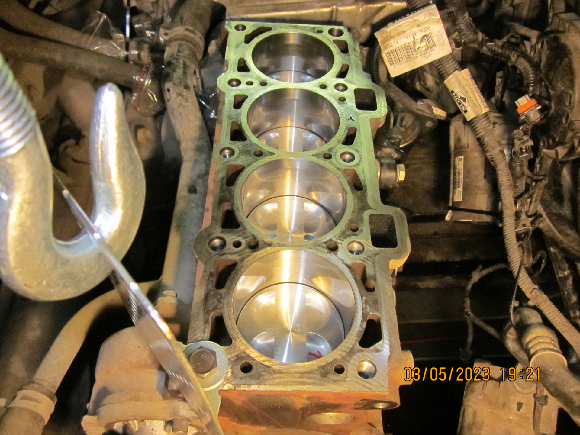 Поршни в цилиндры аккуратно загнал оправкой, оставшейся ещё со времён капиталки Киа Шума. Поршни вошли плотно, никакого стука на перекладке (как было в стоке) нет и в помине.