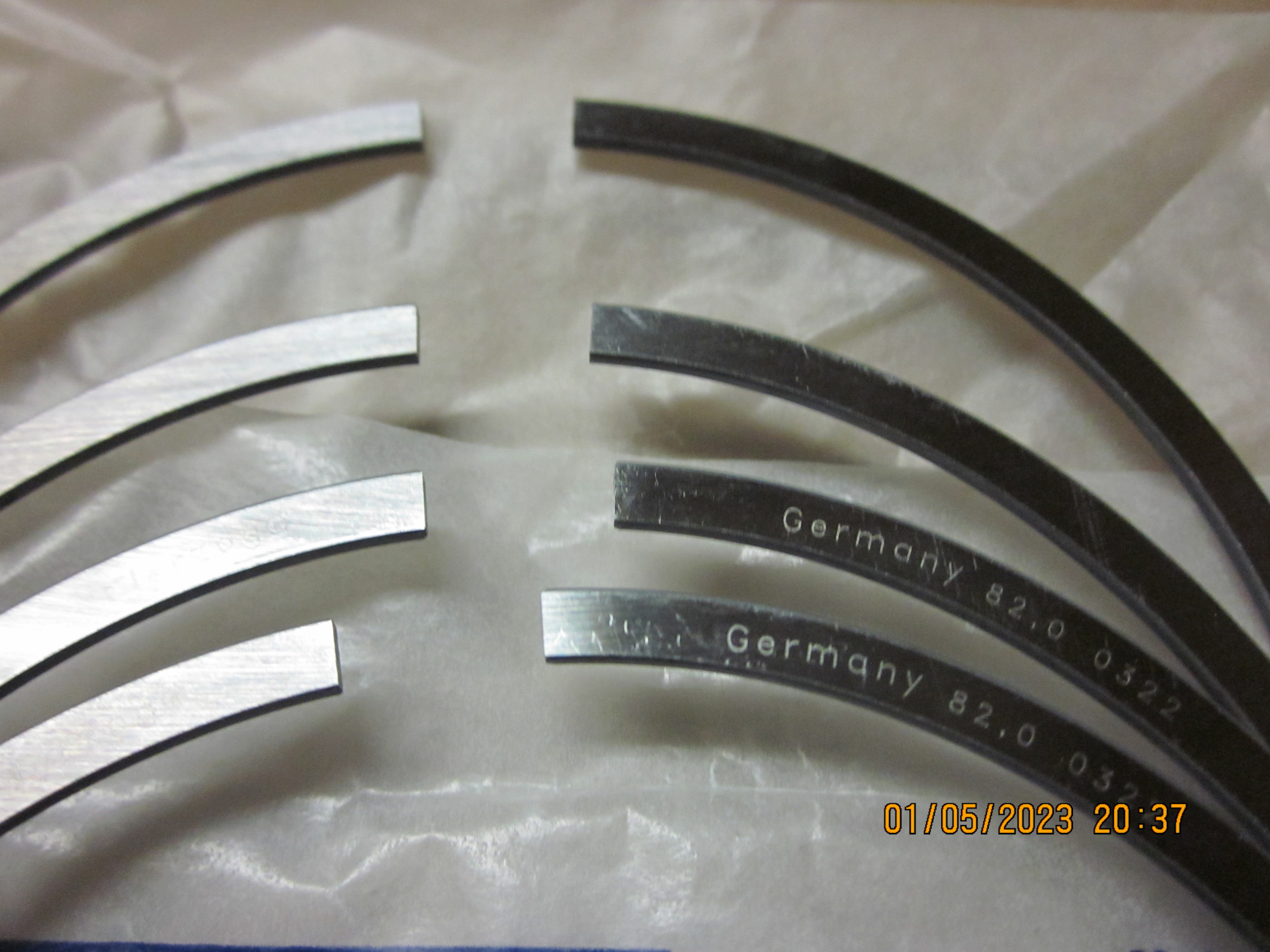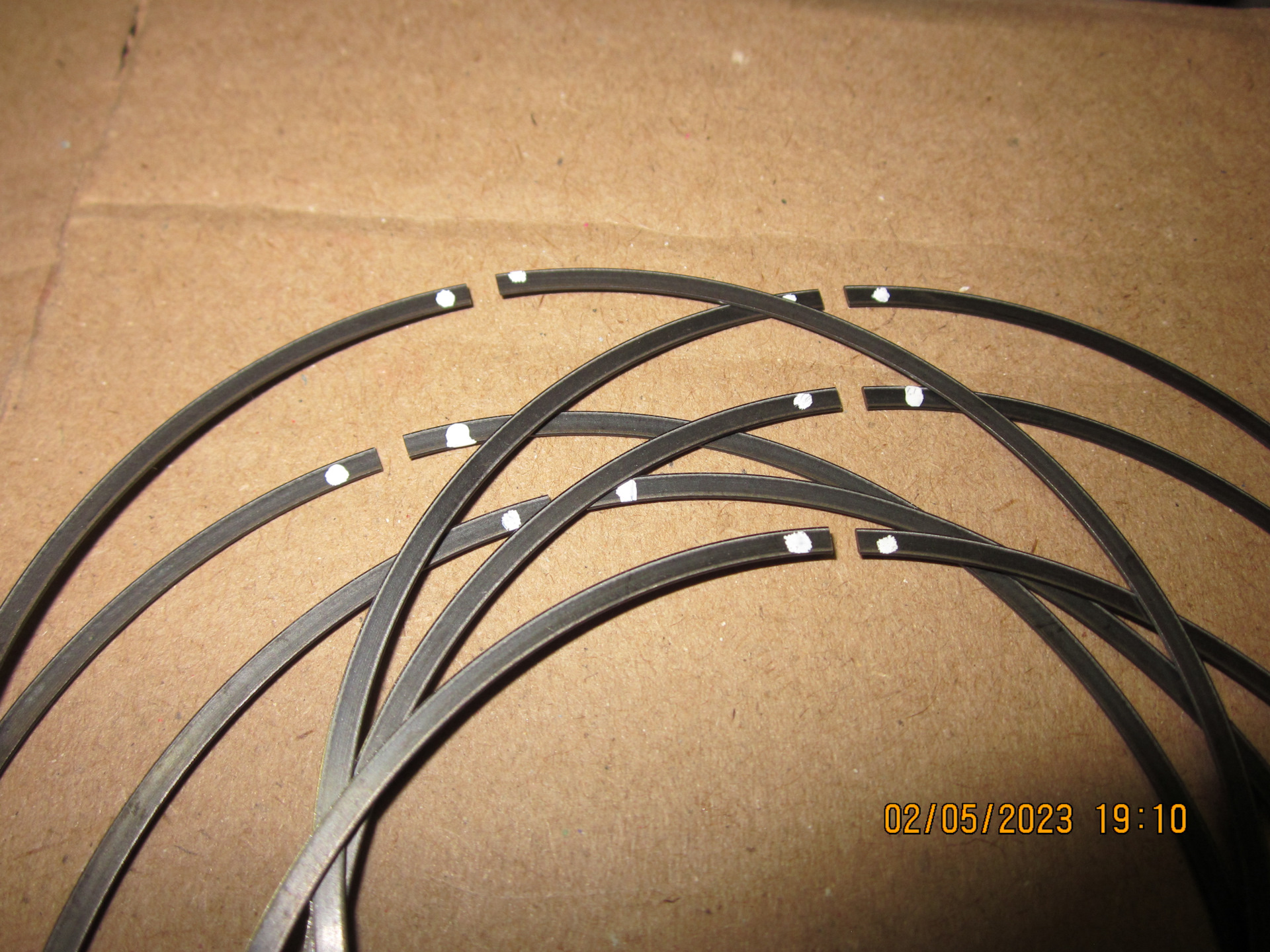 Все наборные маслосъёмные кольца были проверены по оной методике, и таки да, они реально всегда выгибаются в одну сторону. Даже промаркировал их белым маркером для удобства сборки.
