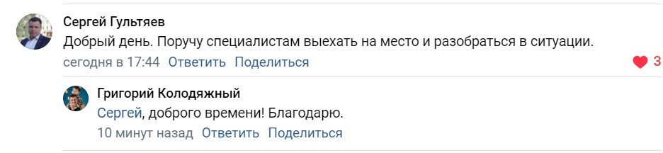Самое забавное, что глава города ответил в паблике под моим постом, что якобы отправит людей и разберется с ситуацией…