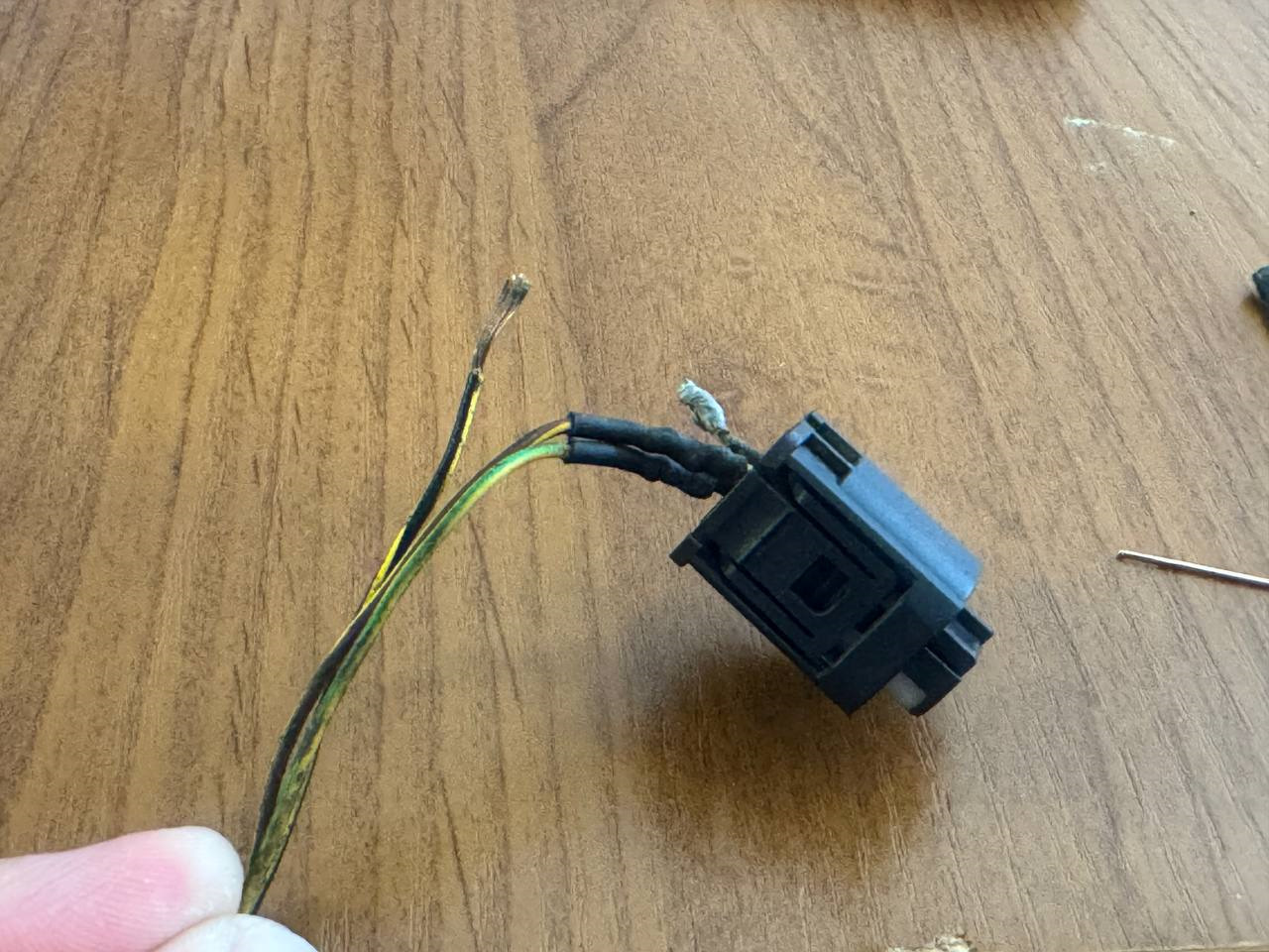 Пропаял, установил термоусадку и замотал изолентой. Повторная прозвонка провода — все заработало.