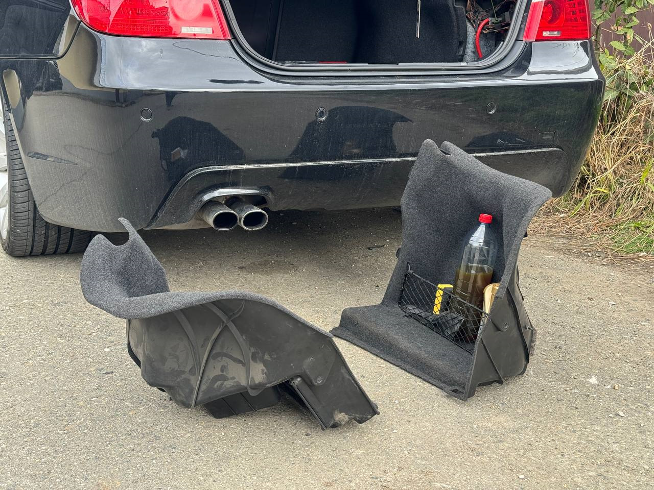 Демонтирую боковые обшивки багажника.