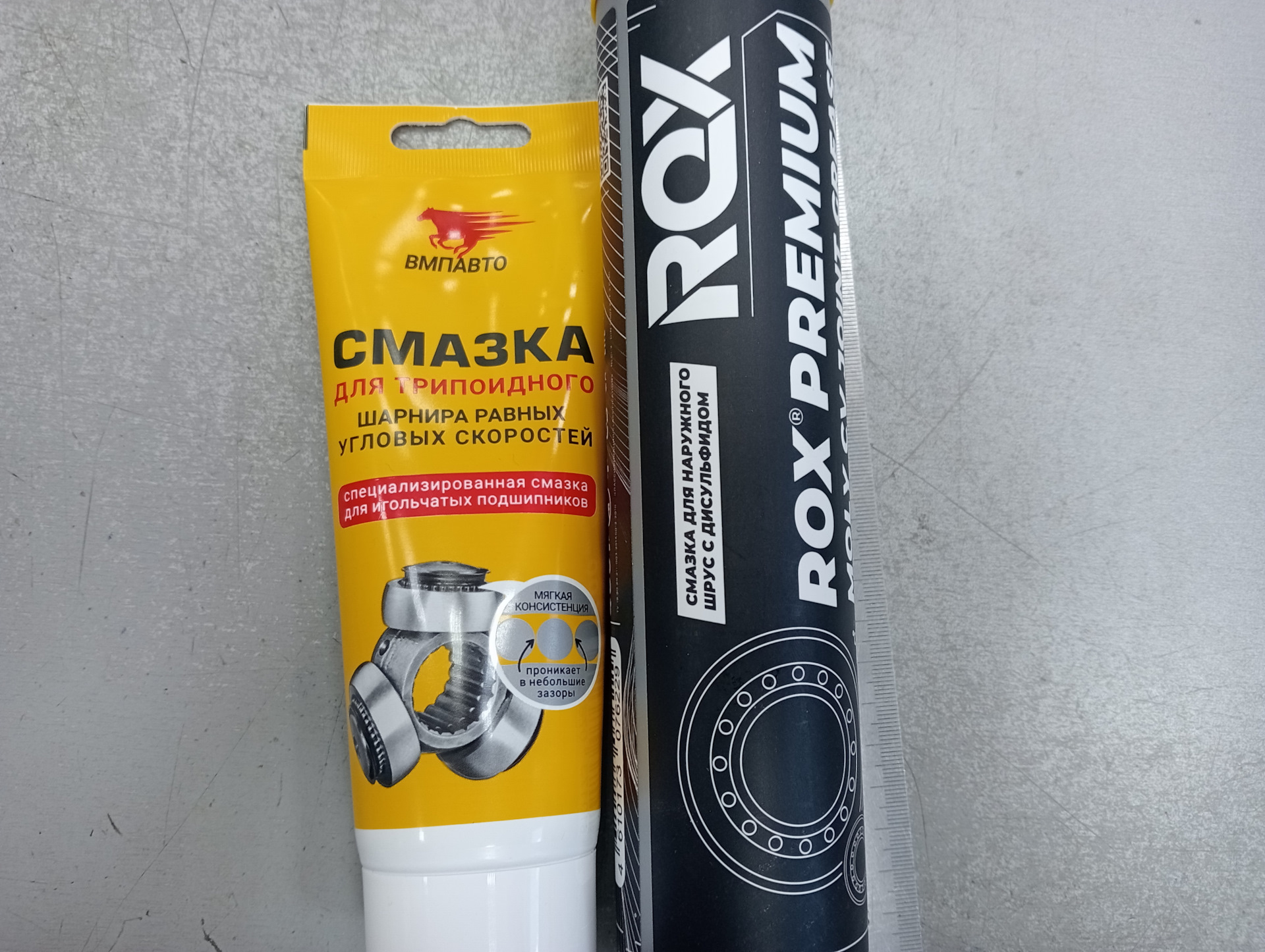 Для внутреннего пыльника нужна высокотемпературная смазка без добавок. Берем два тюбика ШРУС от ВМП за 1000 руб.