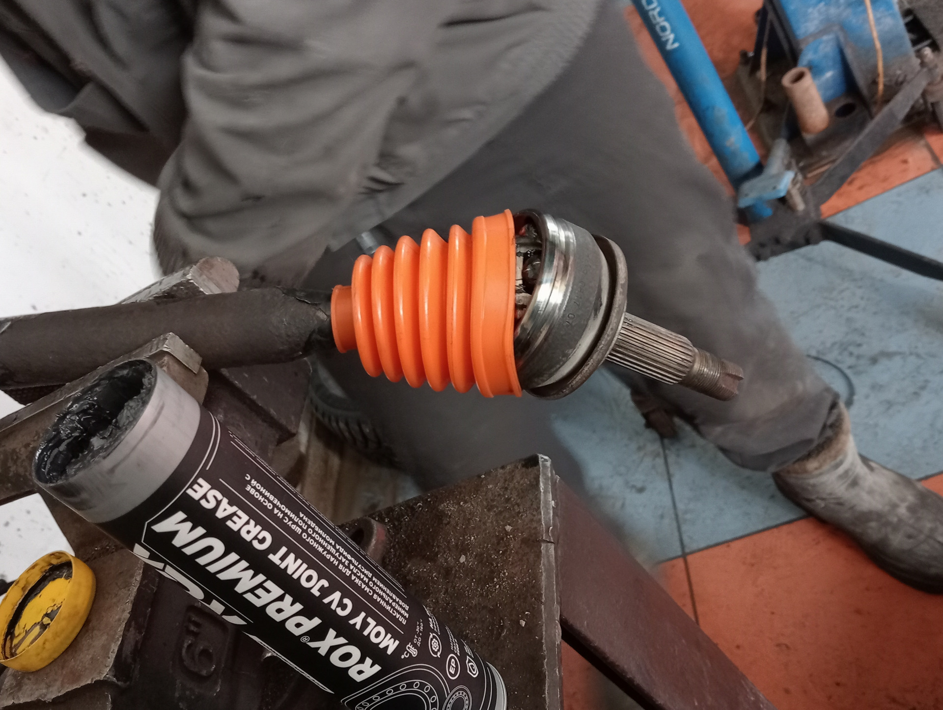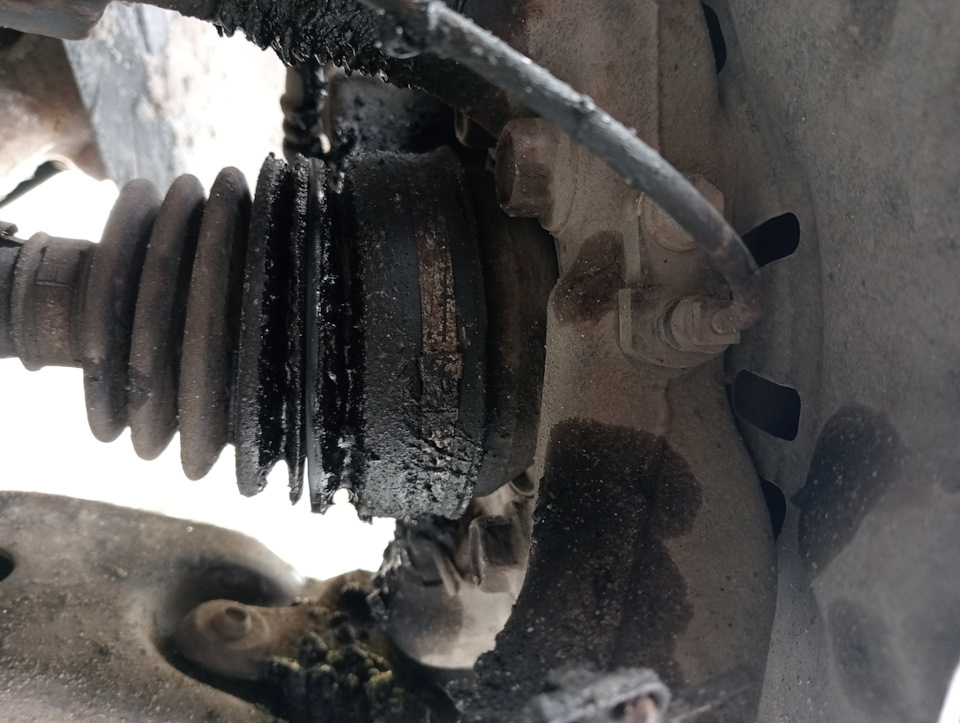 Итого потрачено 4070 руб на три комплекта пыльников. Едем на станцию. Откручиваем гайку ступицы. Выбиваем привод из коробки. Меняем наружный порванный пыльник на Полиуретан 25-05-003 с использованием смазки на полимочевине с молибденом.