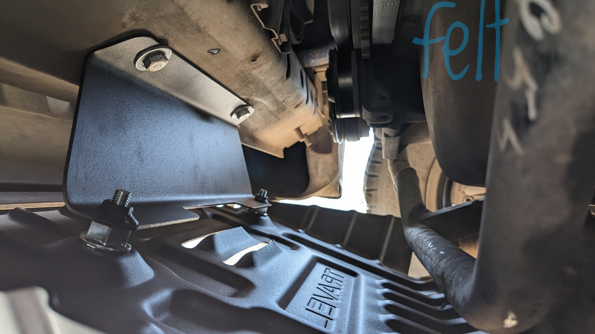Передняя защита прикручивается через адаптер к нижней рамке радиатора спереди и к балке сзади. И все это в штатные места.