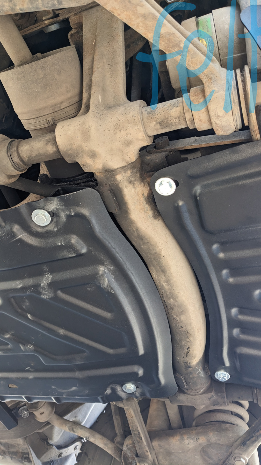 У меня из автосалона такая защита установлена. Также штатные пыльники двигателя установлены, а здесь нету