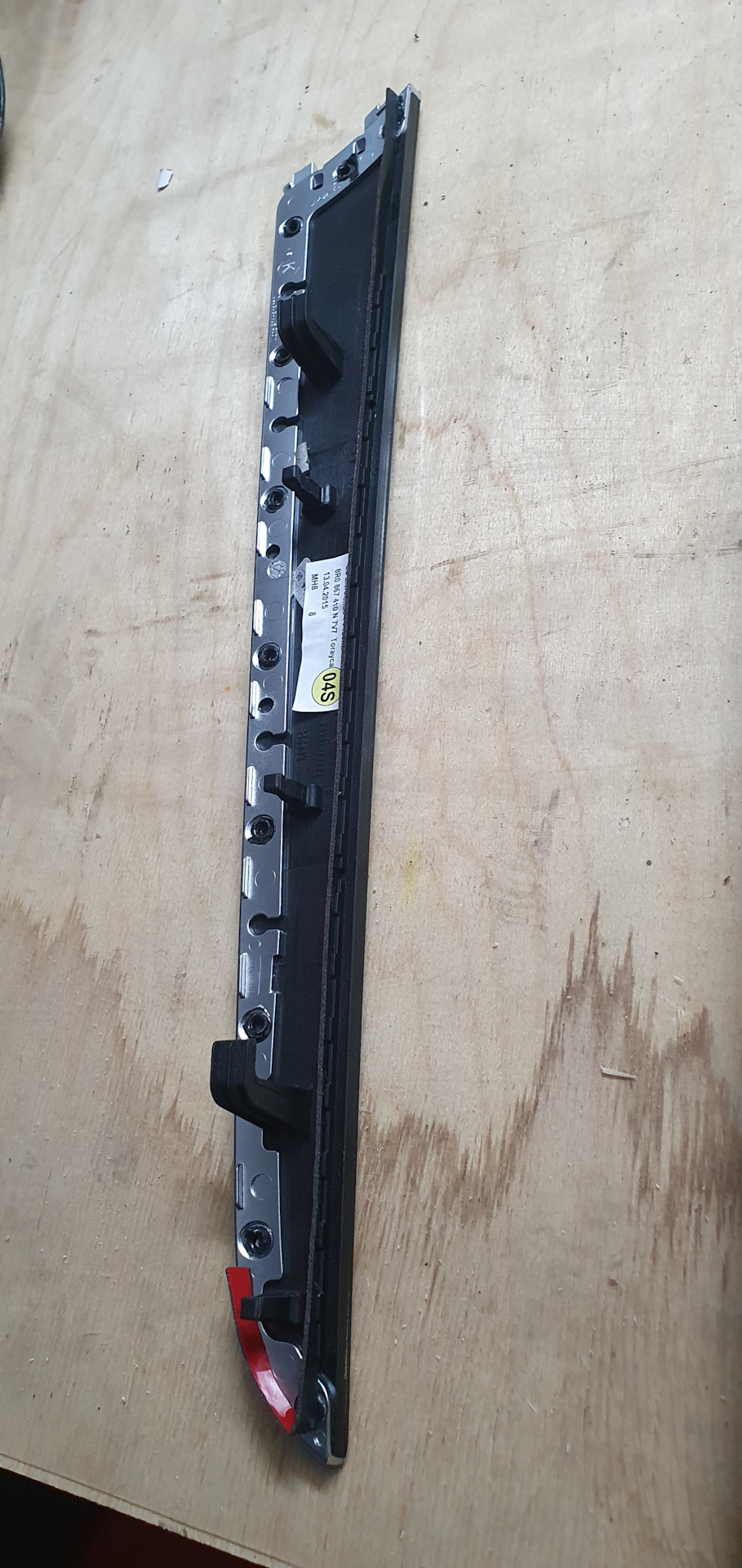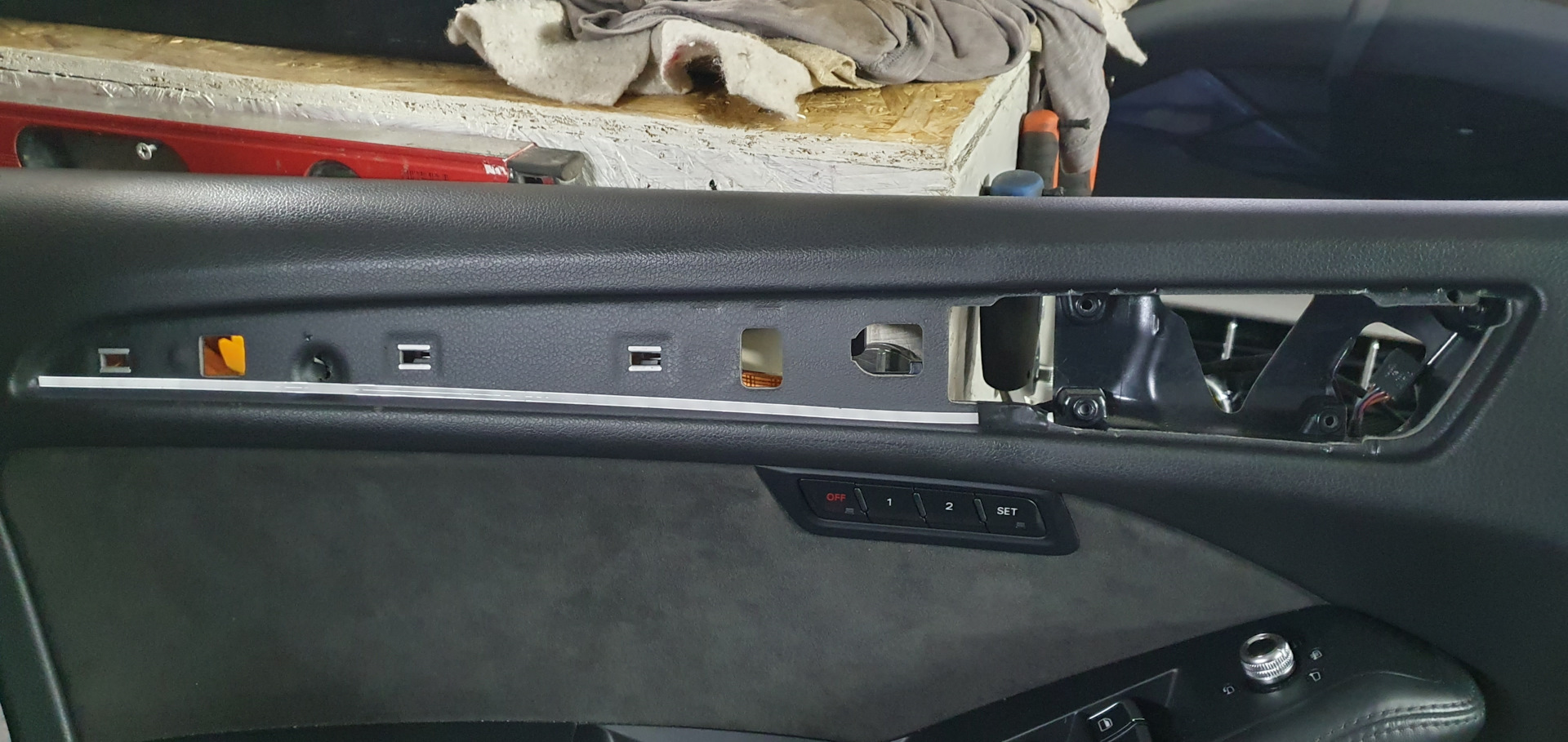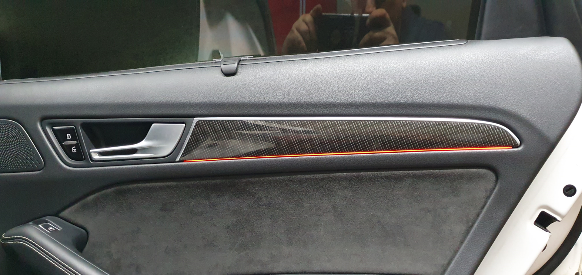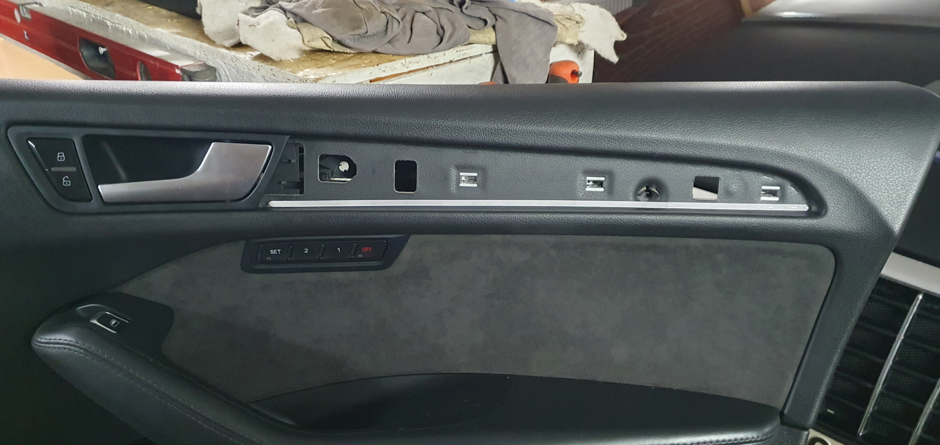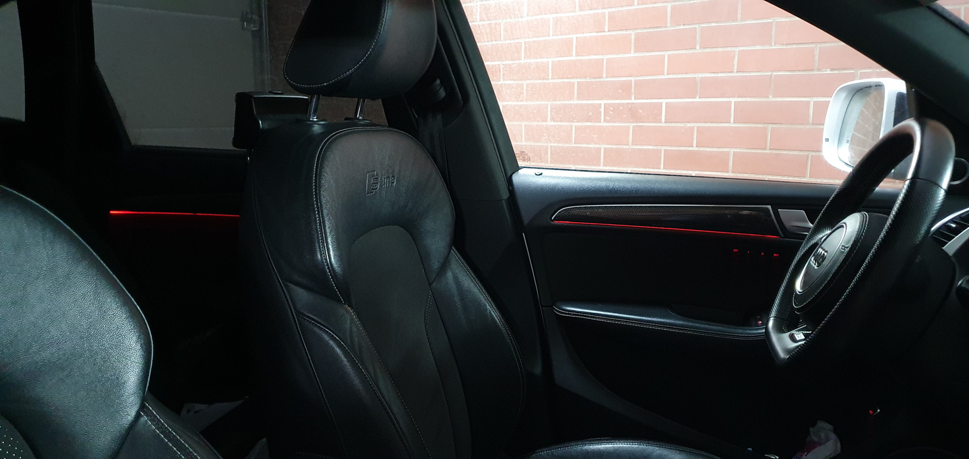 Я замерил длину ленты, она составила 37см по нише накладки. Затем колебался на счет цвета, красный или белый, т.к. в А6 штатная была белая. Интересное еще на тот момент аж 2007г уже были такие решения, работала от блока двери, при открытии двери светила ярче, при закрытой двери приятный лунный свет!