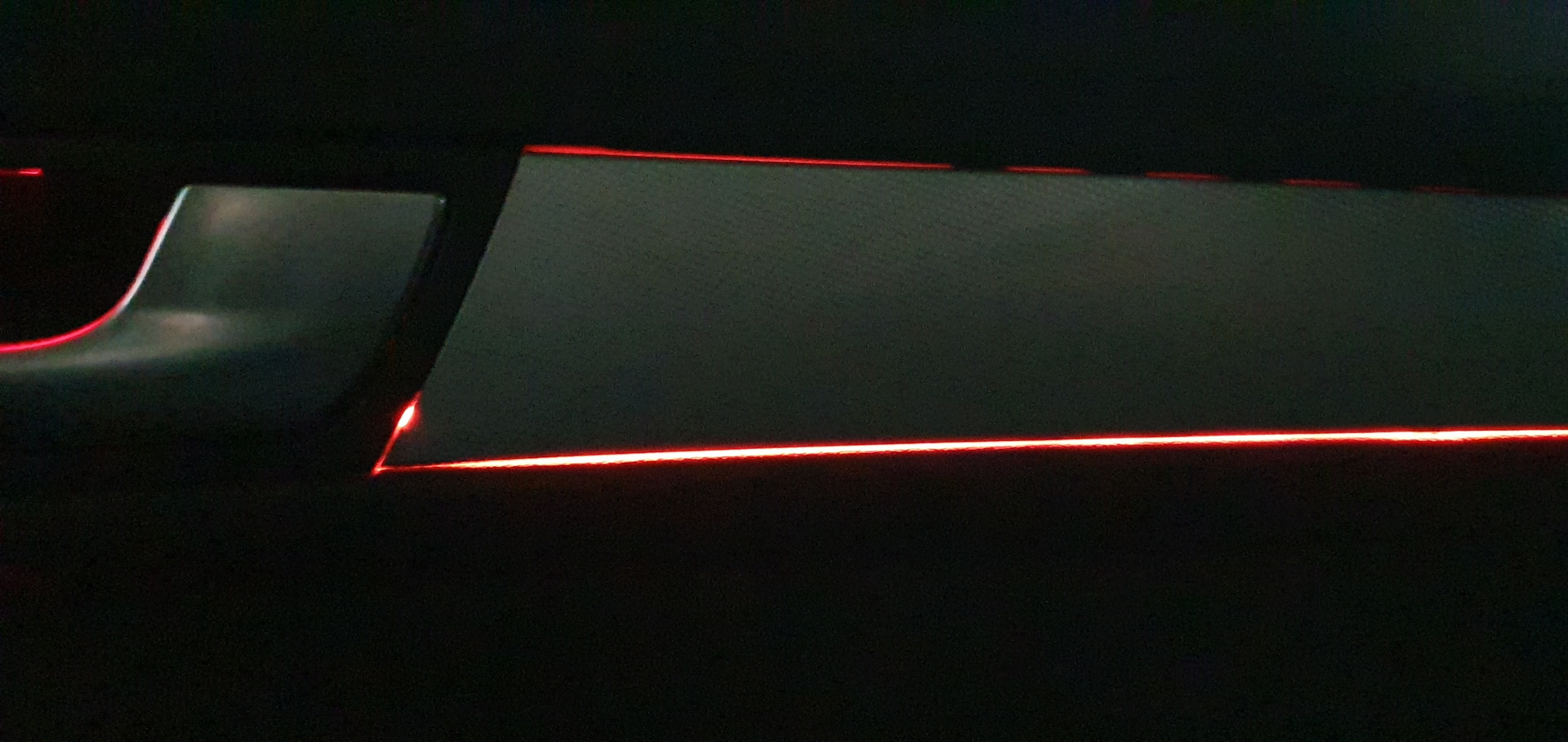 В итоге получилась отличная атмосферная подсветка, немного освежили салон. Смотрится хорошо, приятная тонкая линия. Яркость также регулируется.