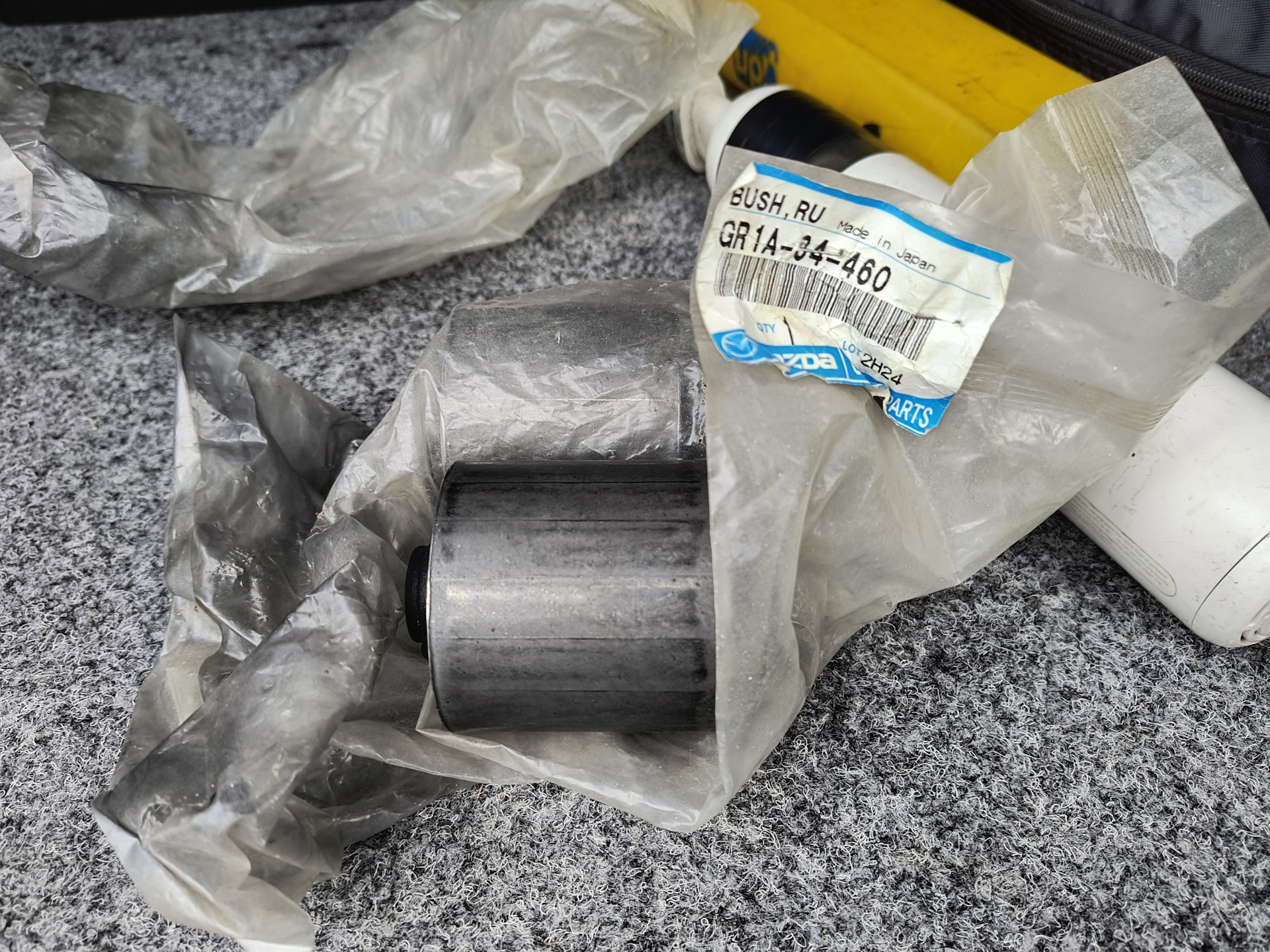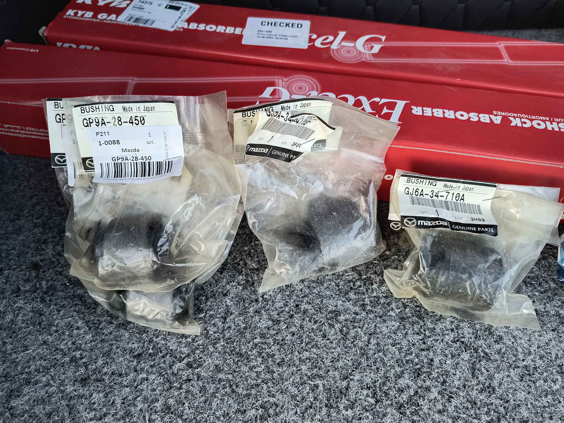 Давно ничего не писал и не выкладывал, но по-тихому покупал запчасти, подвеску донорскую под восстановление, оригинальные сайлентблоки где они есть, где нету брал аналог более менее нормального производителя типа TENACITY, подвеску отправил дружбану Ed-Kunavin на песочку и запрессовку так же реставрация всех рычагов и покраска, дело движется, верхние рычаги будут на шаровых 555, тяги стабилизатора перед зад тоже фирмы 555, пыльники амортизатора взял KYB, амортизаторы перед/зад KYB Excel G, наконечники рулевой менял недавно фирмы TRW, тяги фирмы Lemforder уже давно лежат ждут своего часа, пыльники тяг так же купил Lemforder, резиновые прокладки под пружину оригинал Mazda, опоры, опорный подшипник тоже все новое, втулки перед/зад тоже все новые оригинал Mazda, на фото лишь малая часть всего что хочу заменить, считаю если делать то один раз и хорошо!
