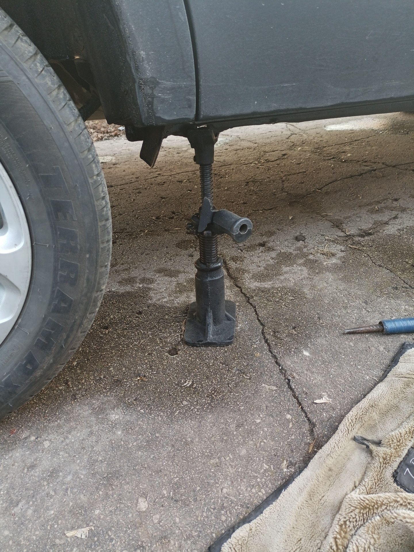 Пролежав всю зиму колеса не спустили. Как положил осенью 2,2, так и весной 2,2. Домкрат от УАЗ очень удобный!
