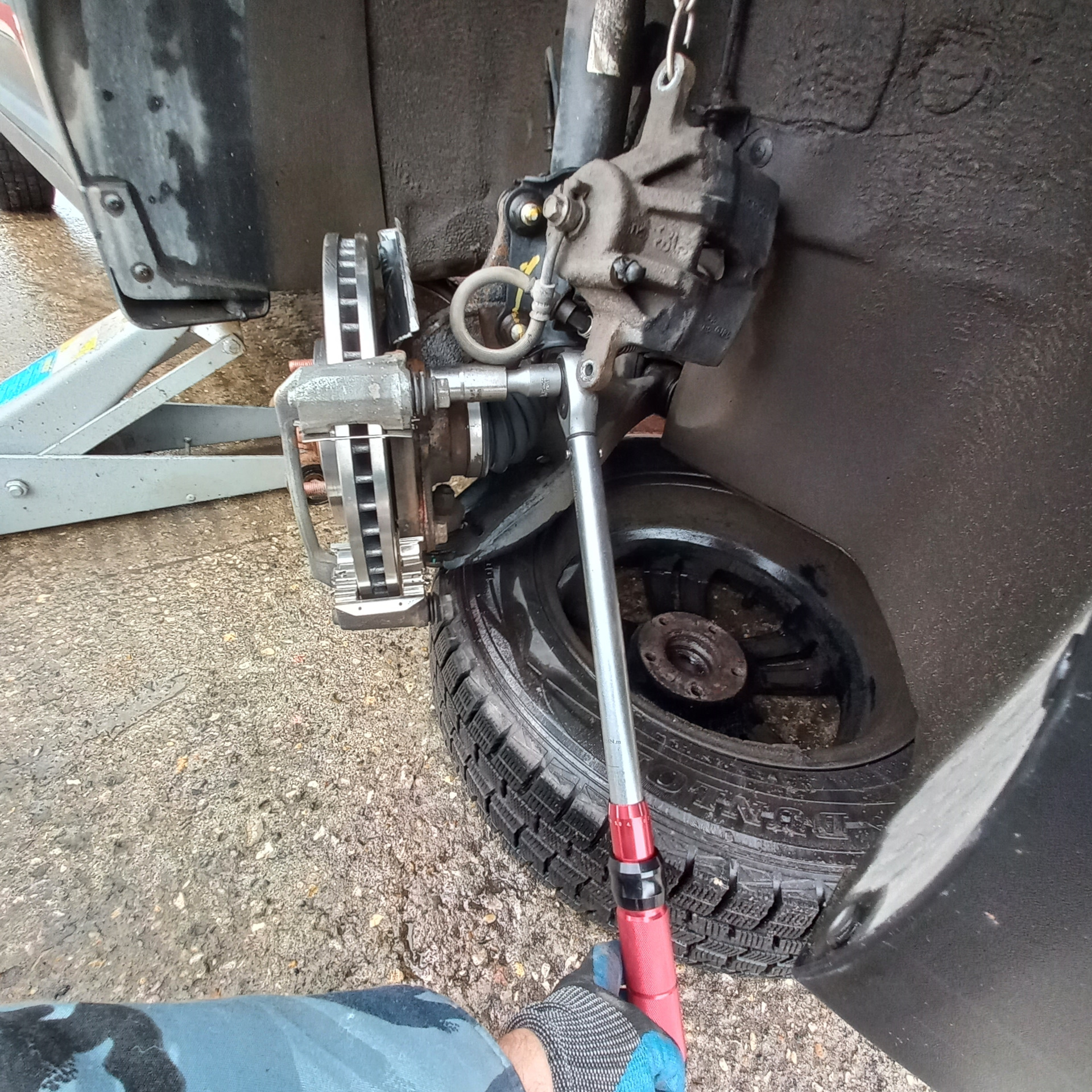 Теперь ставим летние колеса, не забывая проверить момент затяжки динамометрическим ключом.