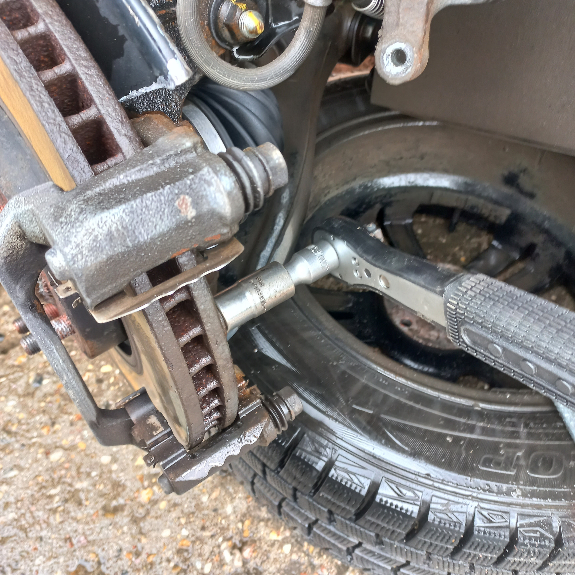 Рассудив, что до весны осталось не так много времени я решил совместить замену дисков и колодок с сезонной сменой колес. Чего лишний раз гайки крутить.