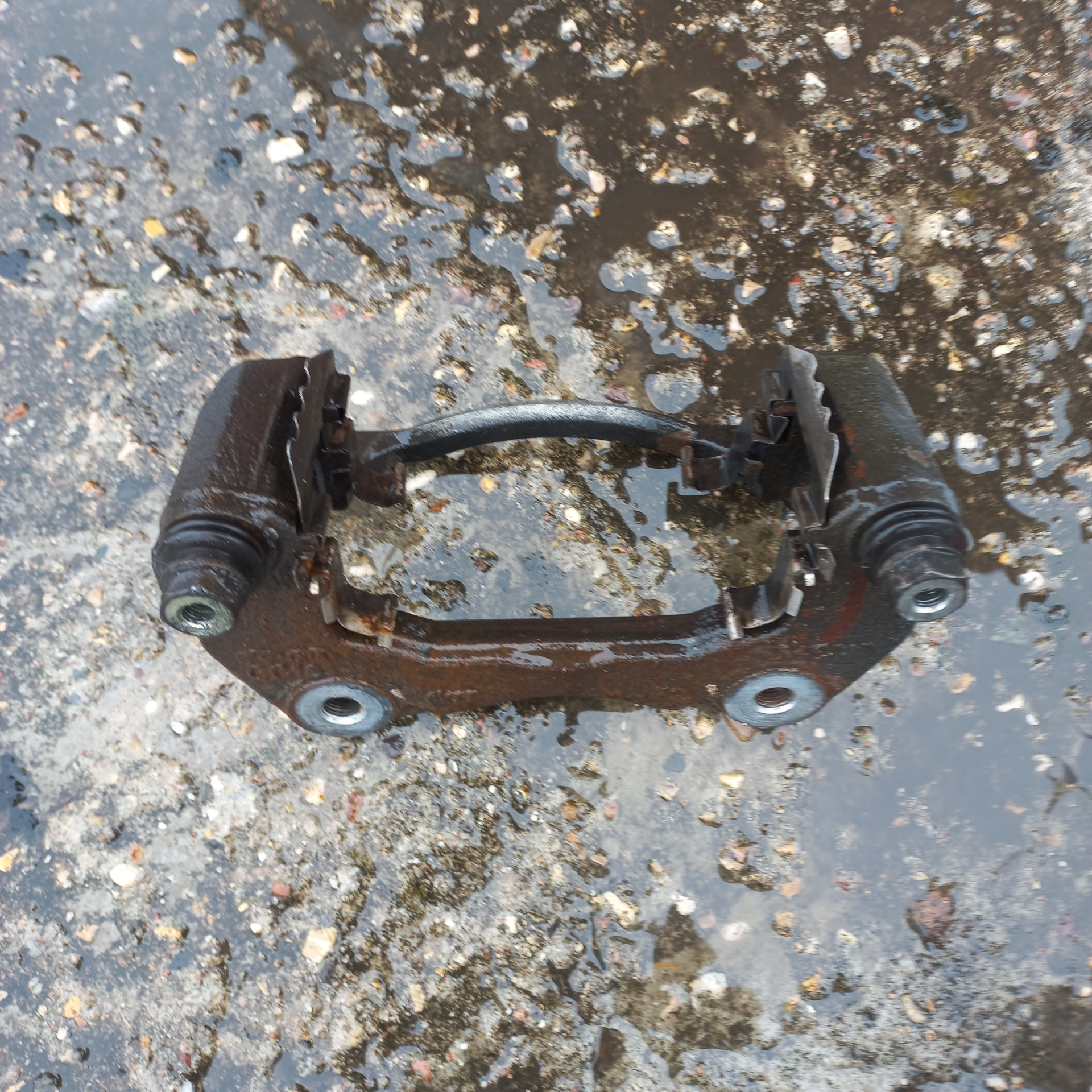 После демонтажа тормозного цилиндра открывается доступ к тормозной скобе и колодкам .