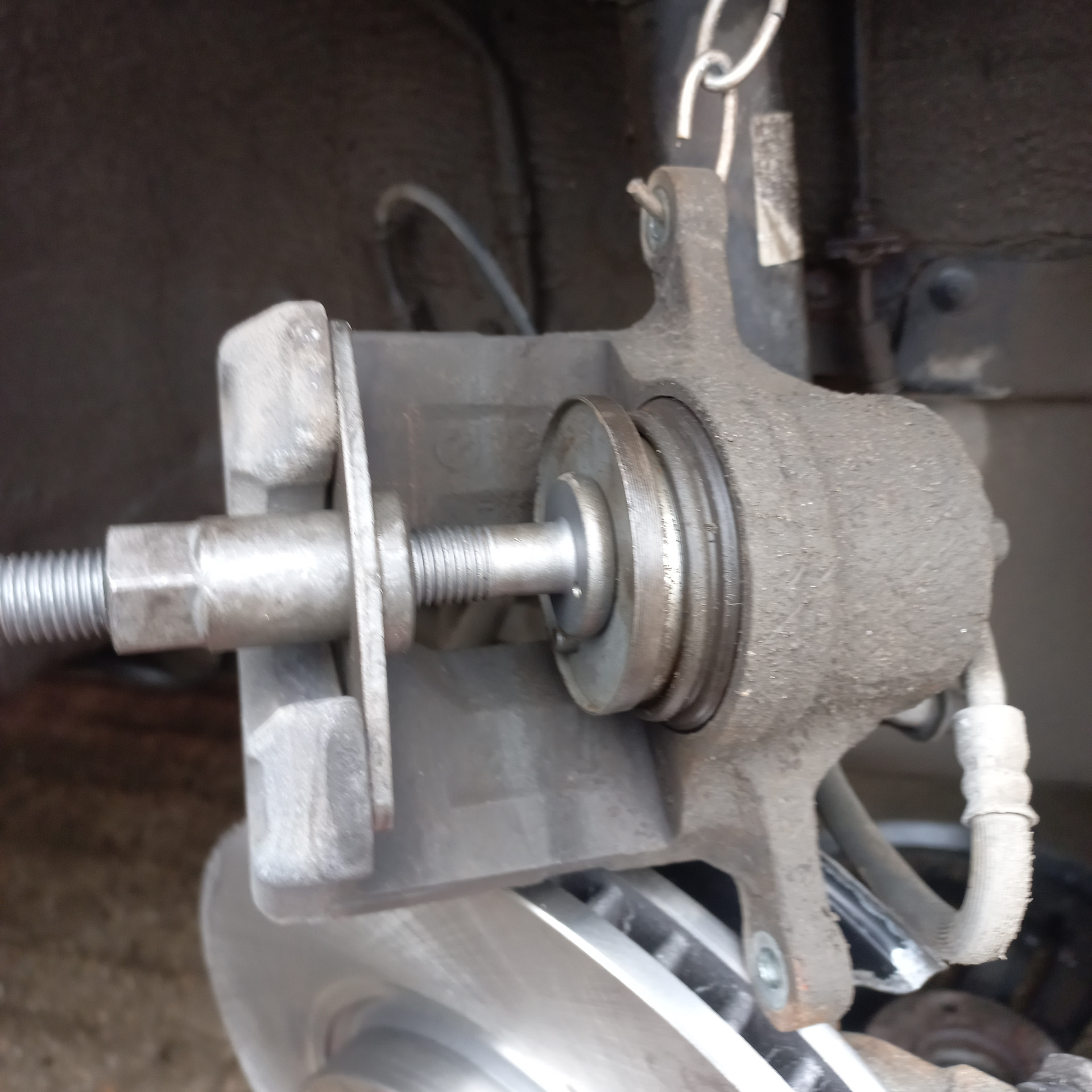 Перед тем, как вернуть тормозной цилиндр на место, его надо полностью утопить. У меня для этого есть специальный набор — очень удобно.