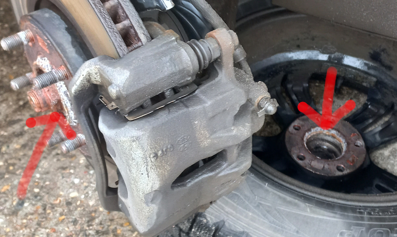 При торможении происходит огромное выделение тепла, которое распределяется на ступицу и колесные болты/шпильки, отчего в парах фиксации на резьбе, если там присутствует смазка, то при резком нагреве она преобразуется в герметик, который блокирует откручивание крепежа диска.