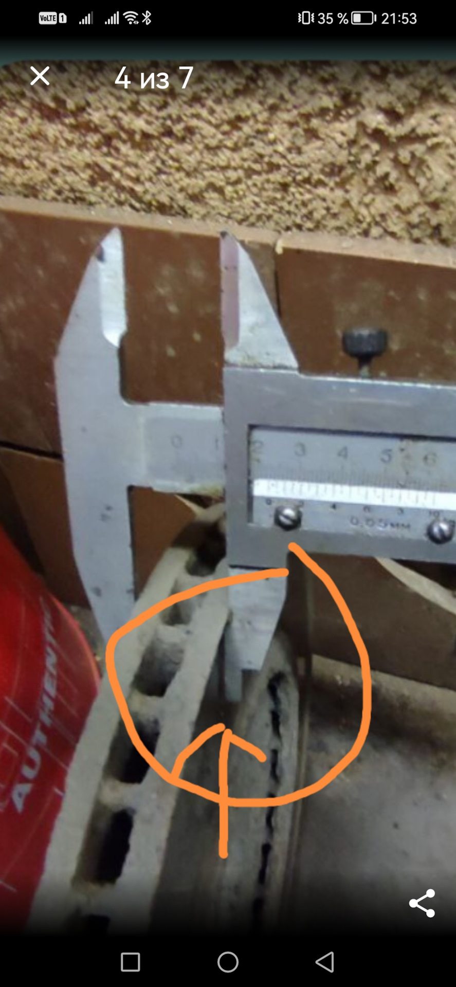 Чувак у тебя губки штангеля уперлись в выработку диска и миллиметра не достают до измеряемой поверхности и это только со стороны с которой видно. При этом нигде у тебя в записи нет артикула диска чтобы посмотреть минимум который указан производителем а не с твоих слов с которых как мы видим ты любишь приврать. Кому-то очень повезло что такой крохобор как ты на укатаных дисках не при летел в корму при резком торможении а то что ты поставил б.у диски это вообще за гранью понимания.