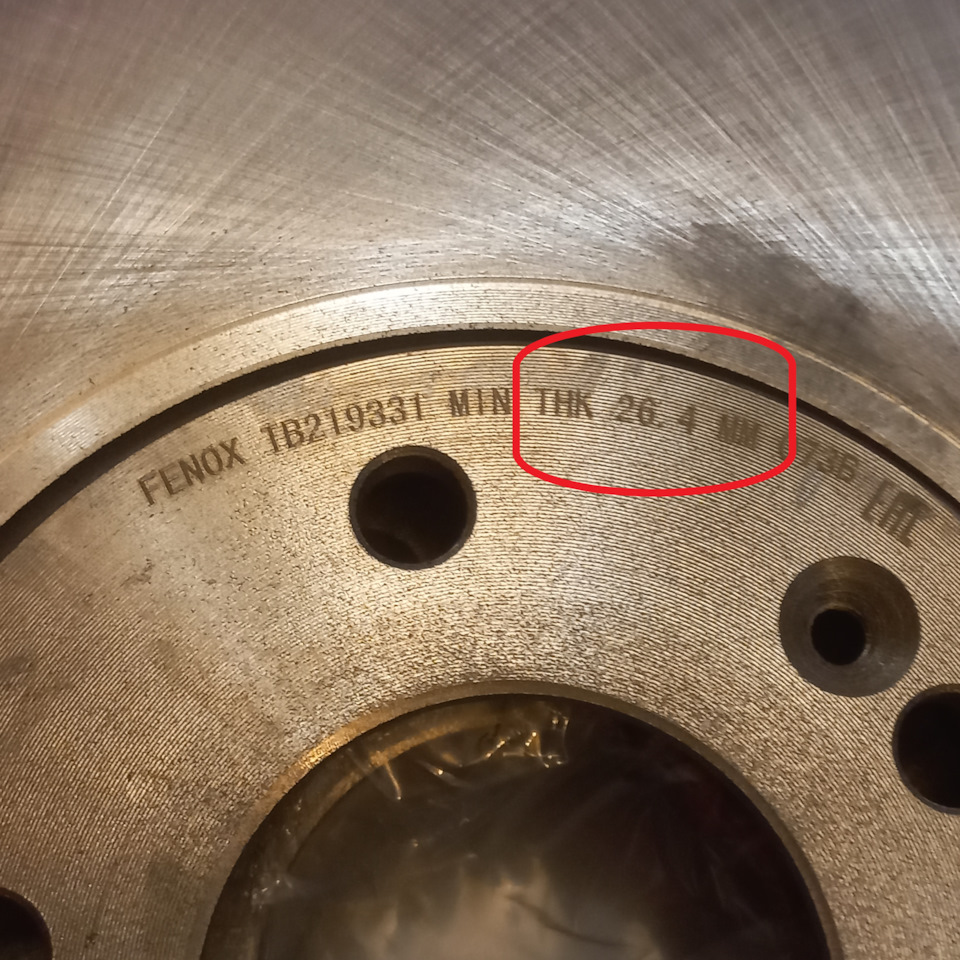 Напоминаю про запись в сервисной книжки — толщина передних тормозных дисков 26,3 мм.