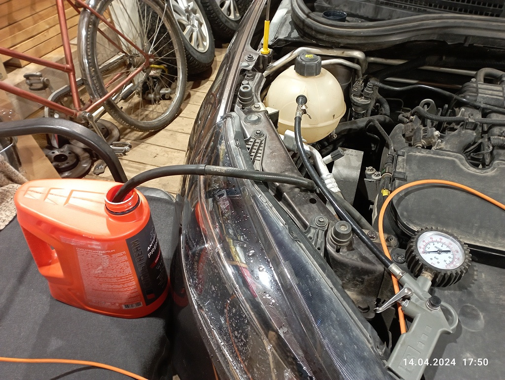 Слив ОЖ методом компрессора и замена прошла очень быстро.