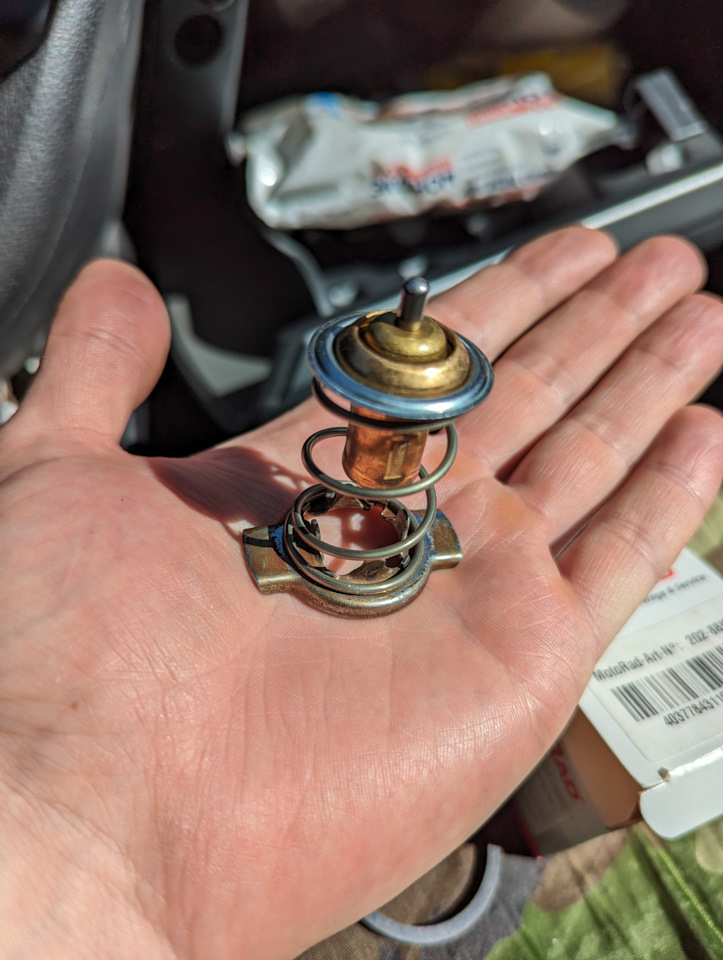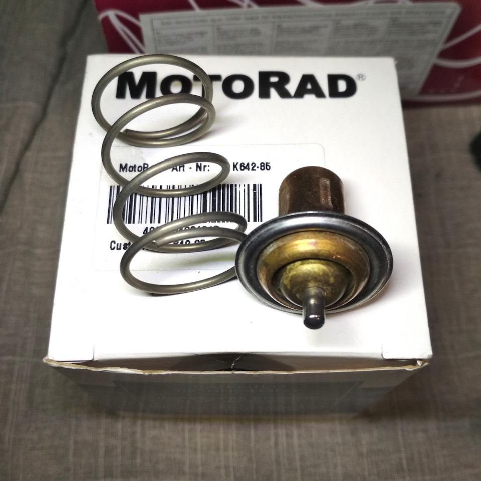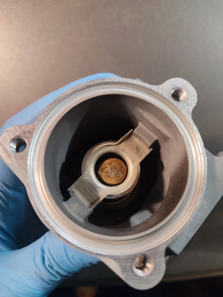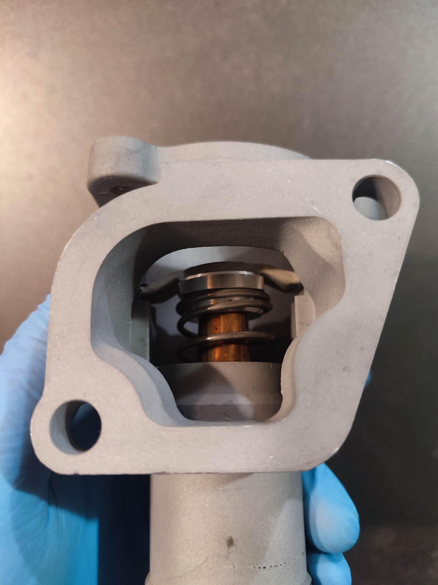 Поставил себе с пружиной моторад и планкой от калины, сейчас тестил, набор 87 сброс до 82 иногда до 79, производительная помпа видать тут причастна. Заметил еще при открытии термостата он немного кособочится, задняя часть колбы особенно но остывая снова оказывается в середине, интересно это у всех так… На пружинах бехр тоже есть эффект скоса.