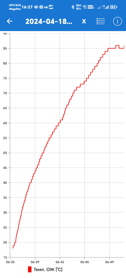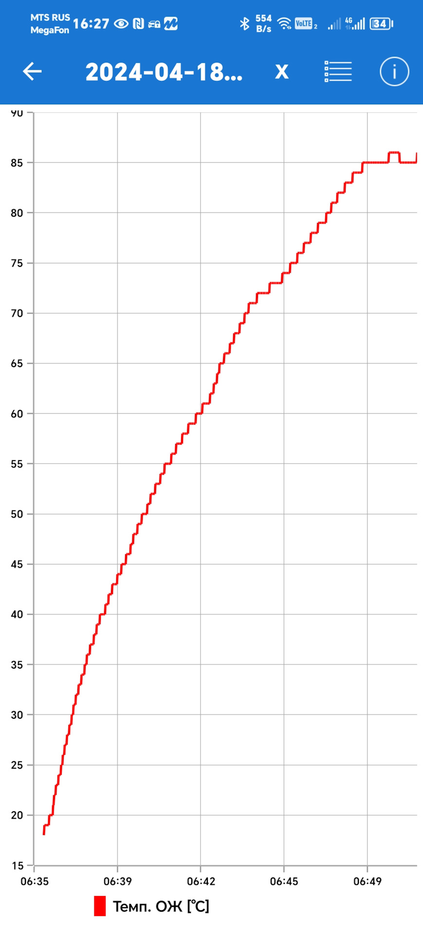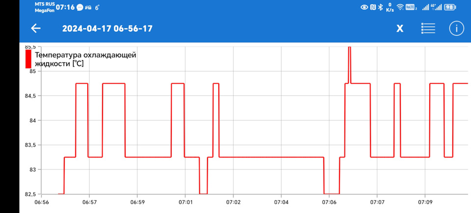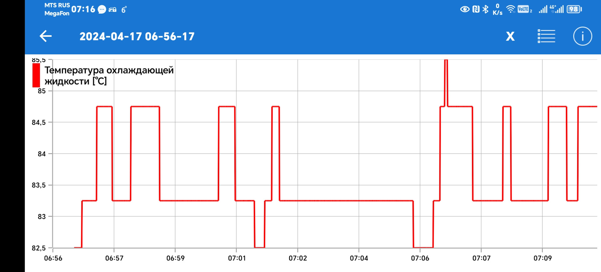 Дельта маленькая. Пол градуса не хватает до 85. Норма. Начни запись лога прямо с холодной машинки и до стабилизации температуры. График сюда.
