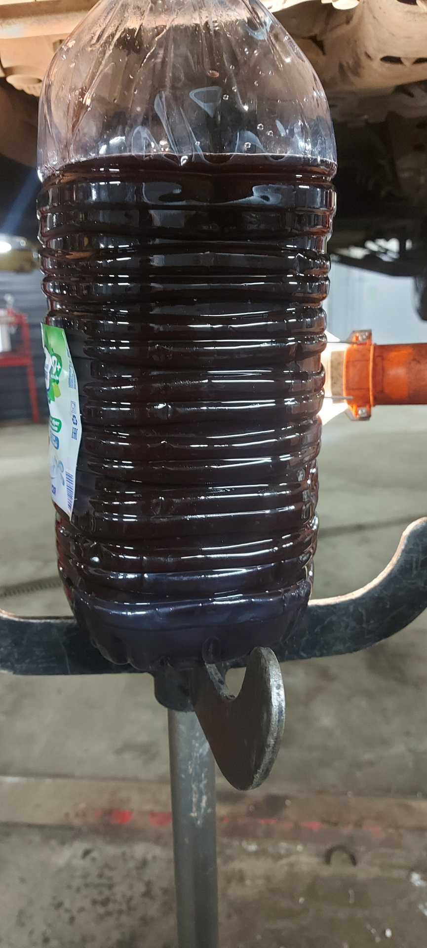 Да качество не фонтан. Вот я сделал еще пару фотографий. Поставил в задней части переноску как прожектор. Посмотреть качество масла на просвет. Но даже свет не смог пробить эту жижу.