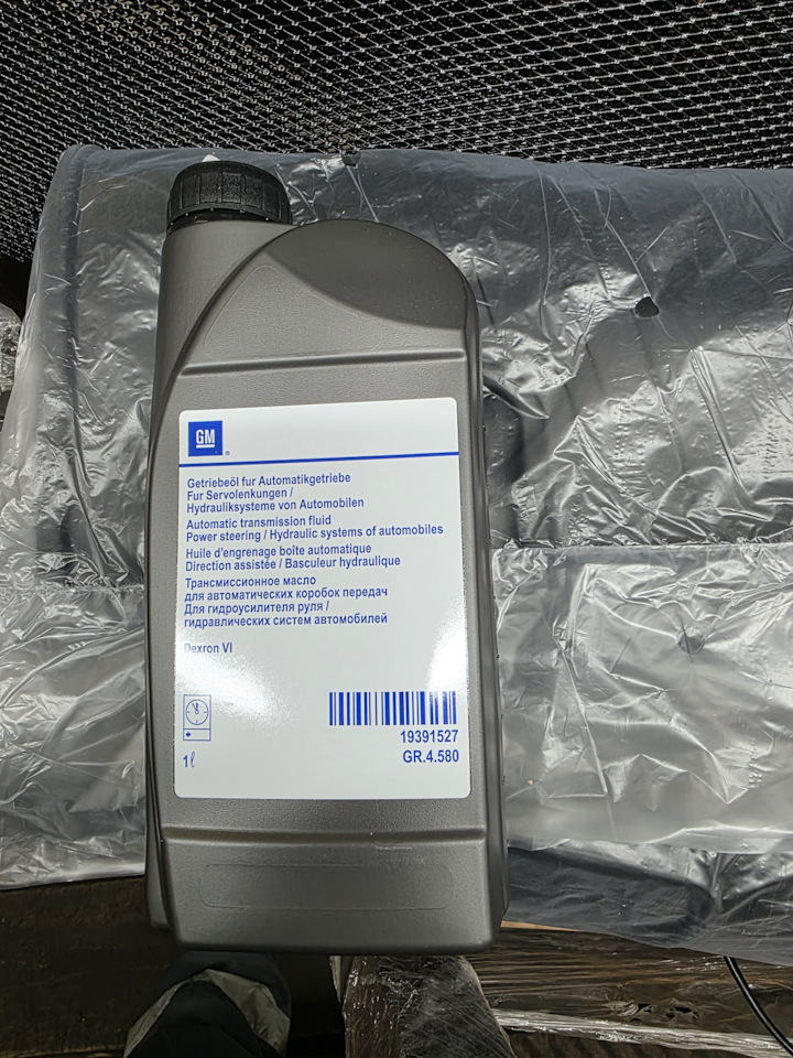 Привет всем. Продолжаю своё ТО. И речь пойдет о замене масла в Акпп. Купив авто нашел заказ наряд на замену масла на 53.000т км. Сейчас у меня 106т км с копейками. Тоесть ровно 53т км предыдущий собственник сменил масло, но чистично, не полная замена была. Дабы хоть залил Оригу, что лично меня порадовало. Я же для себя решил в Эквике поменять полностью. Не стал экономить на этом и заказал Оригинальное масло и плюс ещё и на промыть. Чтоб всю черноту вымоть с Акпп. Объясню — в нашей Акпп 8.2 литра масла. Если идти моим путем то как правило половина объёма уйдет на промывку. Кто то едит на апаратную замену, по тому же принципу работает. Старое выливается, новое заполняеться. Ну до ладно. Заказал 11 литров масла. Цена одной банки 1800р. Тоесть 19800 в целом. Вот это масло GM DEXRON 6