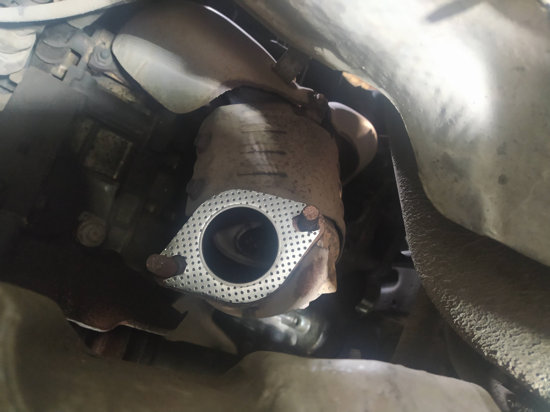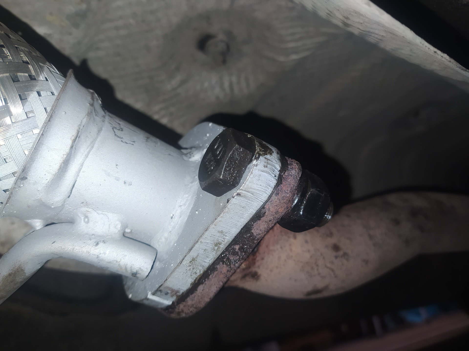 Все прокладки смазал графитной смазкой ., поставил приемную трубу на место .