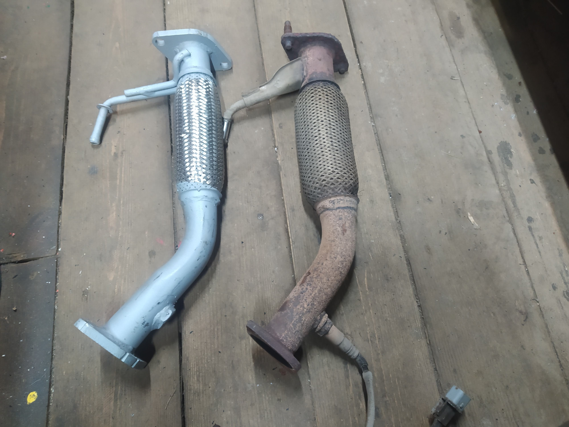 Есть отличие только одно на новой трубе нет 2-х шпилек, не беда у нас есть болты с гайками.
