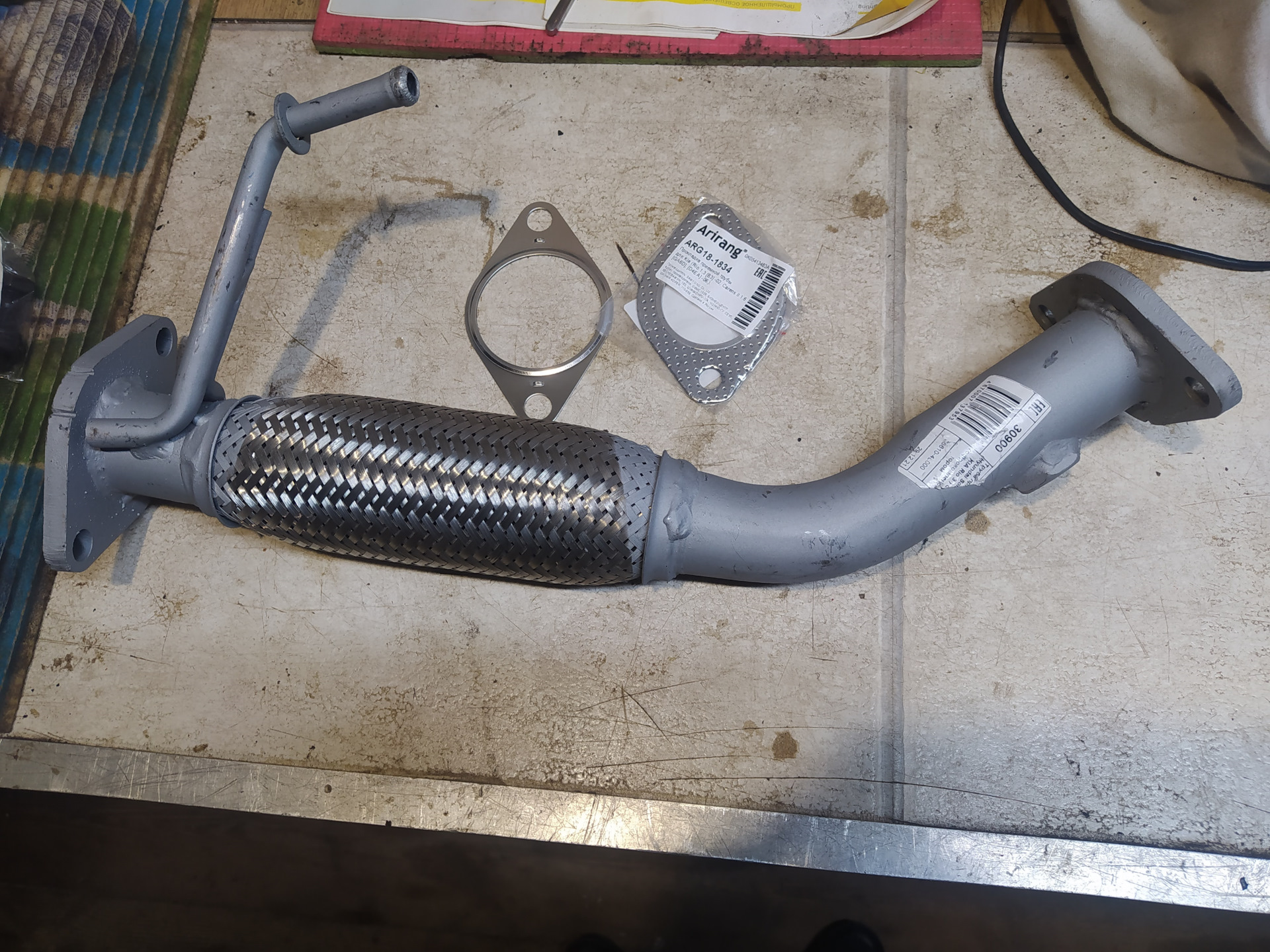Прокладка приемной трубы арт ARG 181834 которые заказал, одна чуть чуть не подошла, а имеено по отверстиям ( отверстия смещены ниже чем надо ), пришлось импровизировать.