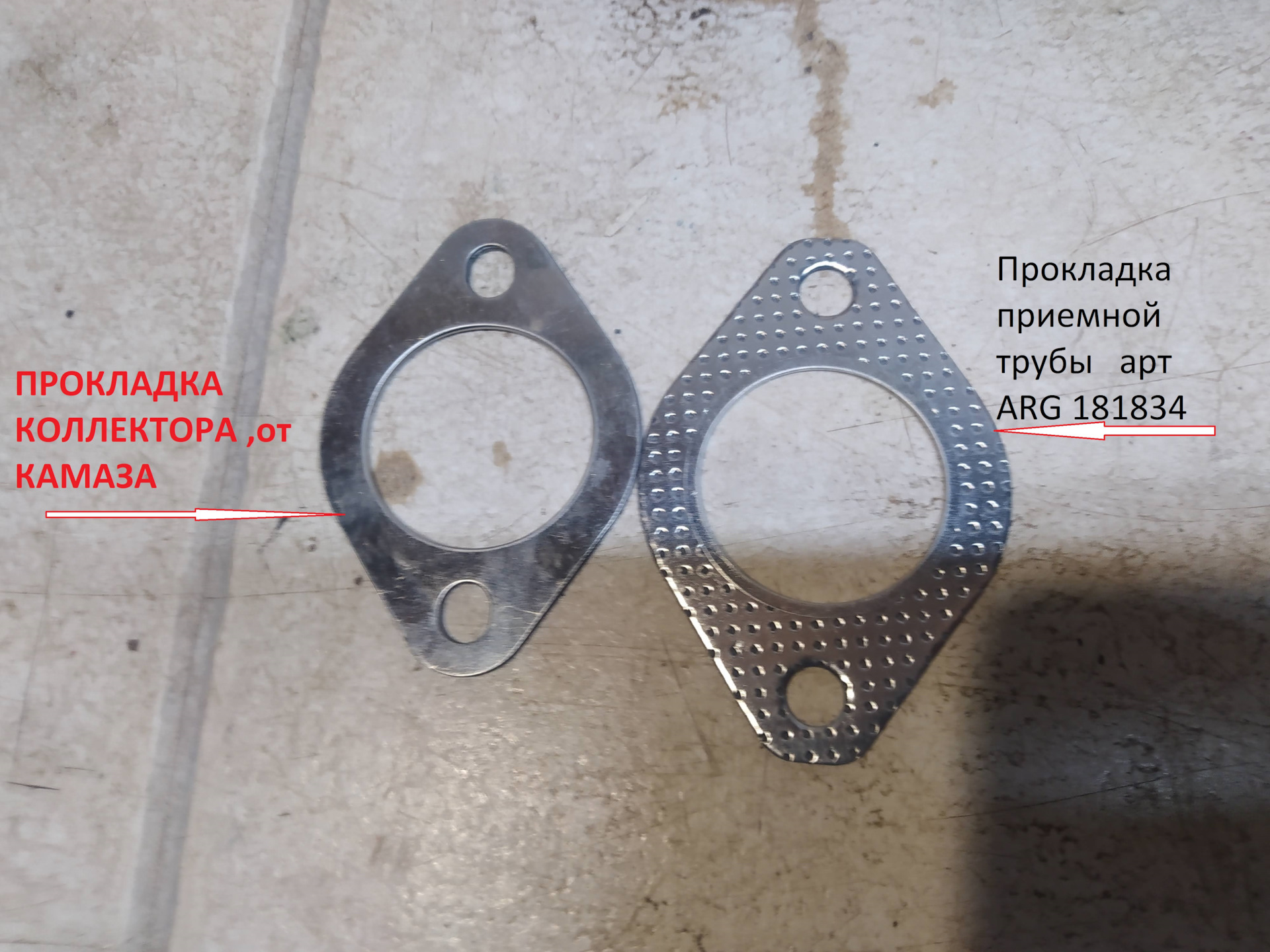 Затем решил поэксперемеировать Взял прокладку от коллектора КАМАЗА и сравнил, практический подходит —