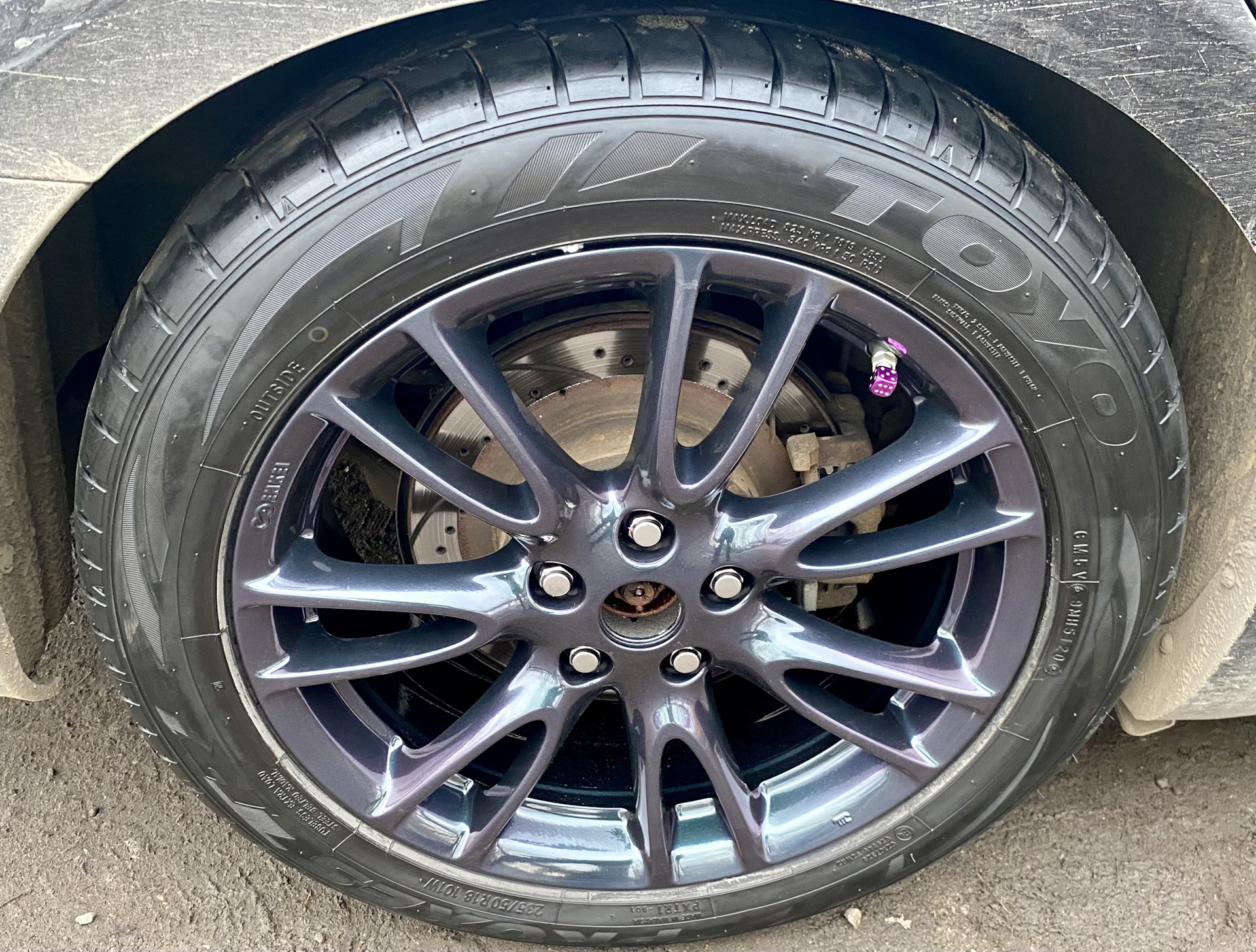 Так же я решил покрасить диски, давно собирался это сделать, тк краска с дисков начала отваливаться. Можно было восстановить оригинальный цвет. Это показалось мне скучным, тем не менее учитывая что это Инфинити, а не Субару импреза и какой нибудь пестрый цвет будет смотреться не солидно, я выбрал темный хамелеон (фиолетовый с зеленым переливом). Не понятно было что получится. Я успокоил себя тем, что если мне не понравится, то я в любой момент могу перекрасить диски в другой цвет. Привез свою пушку в «ДискиКрасим» на проспект октября 84, их мне посоветовал парнишка у которого я заказываю запчасти.