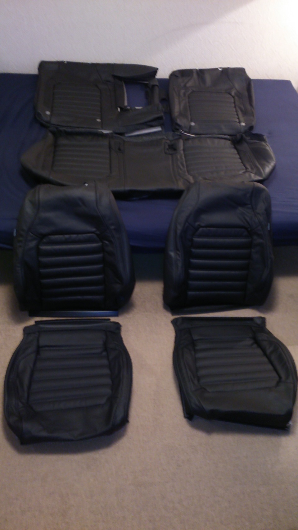 Так как у меня был хайлайновский салон с нужными "наполнителями" сидушек или по-другому "пеной", кожаные подголовники и подлокотники, то мне понадобились только шкурки. Если у вас не хайлайн, то придётся ещё купить "пенки", задний подлокотник и подголовники. Также надо отметить, что и у меня есть маленький косячок — строчка на сидушках чёрная, а на переднем подлокотнике и подголовниках осталась белой. Если бы кожаный салон был с завода, там бы была чёрная строчка. Можно заколхозить маркером, но я решил просто забить и тем более не покупать за бешеные деньги новые детали.