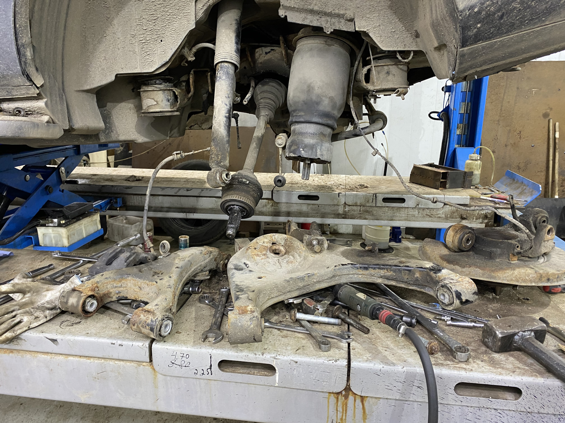 Сэкономив 100к, собираю лень в кулак и в пятницу после работы в 20-00 загоняю ренжа на подьемник, за три часа раскидываю всю заднюю подвеску и еду домой, а там ждёт холодное 🍺 подготовленное супругой. В субботу в 9 утра за мной заехал коллега с работы, закончил в 23-00. Делал все в одного с перекурами/обедом/попи…деть с коллегами.