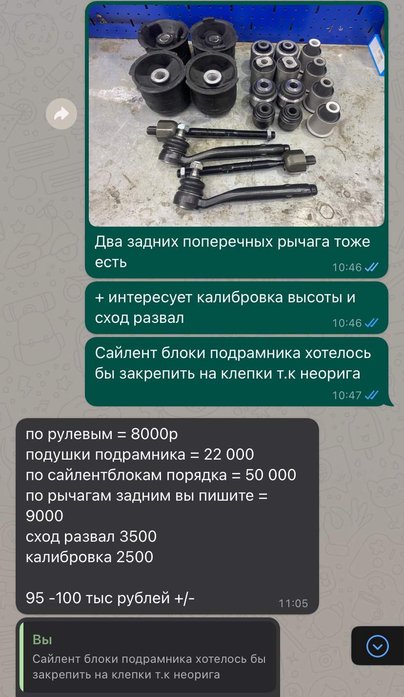 Мне вот тоже пора менять задние сайленты подрамника, но как услышал цену так и аху…л сразу!