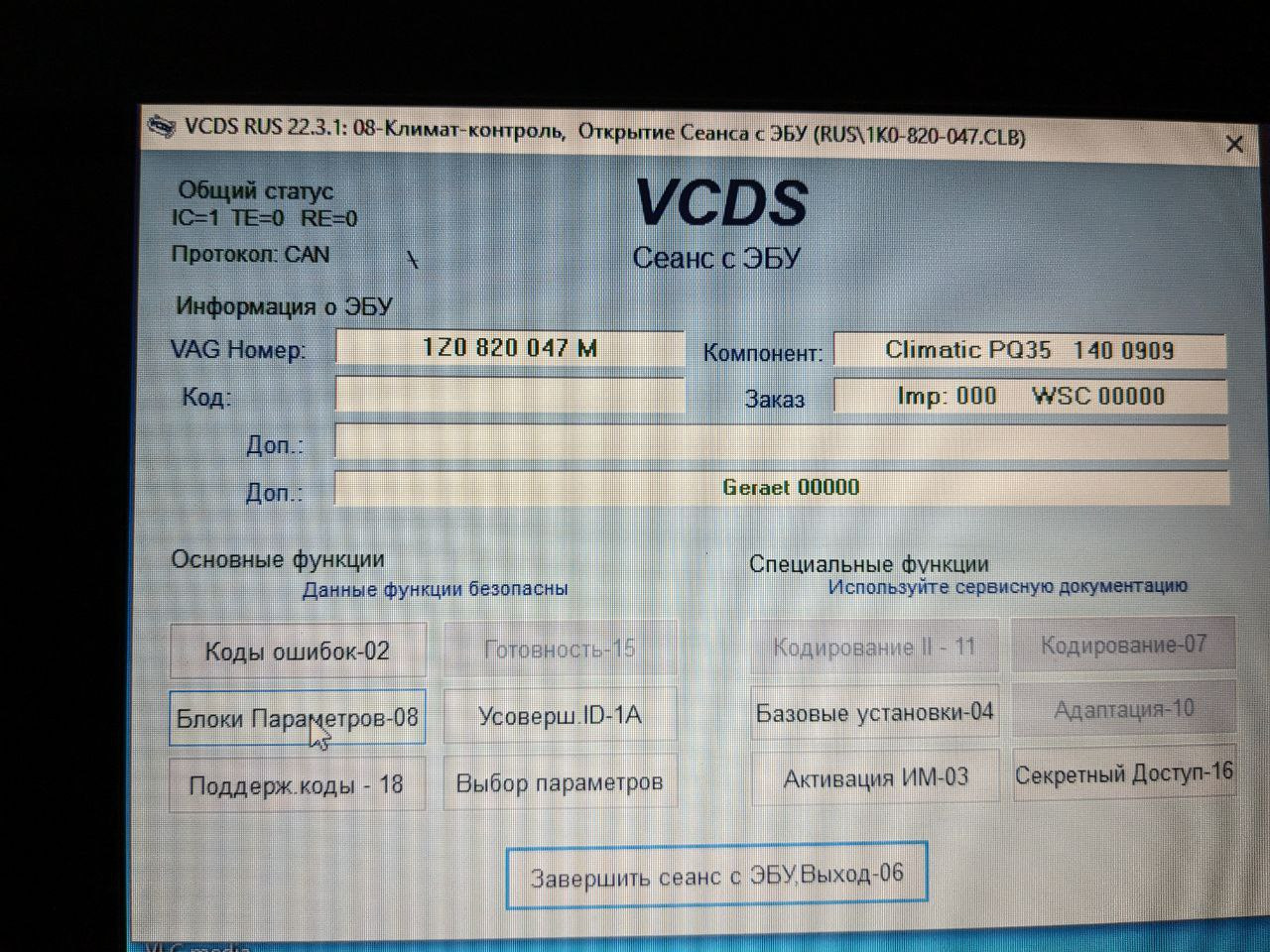 Идем в блок 08 (Климат-контрль), далее в 08 (Блоки параметров)