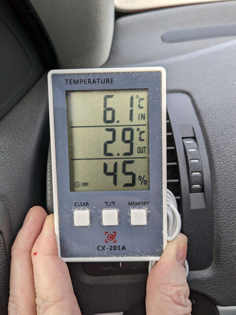На улице было +20, после 5 минут работы кондея получились рекордные результаты, температура в левом воздуходуве достигла 2.9 град. На холостых 3.5 град., если дать немного оборотов, то может быть ниже.