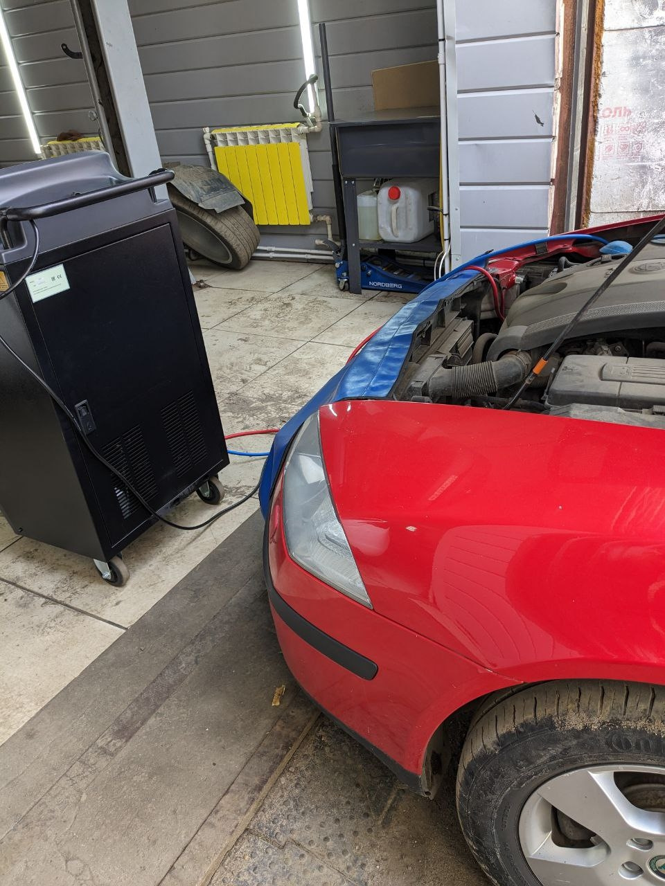 После замены золотников кондиционера (пред. запись) съездил в гаражный сервис, мне на аппарате сделали заправку фреона, 525 г., откачено 15мл масла, добавлено новое масло. Добавили УФ-компонент для поиска утечек, на всякий случай. Отдал 2500р.