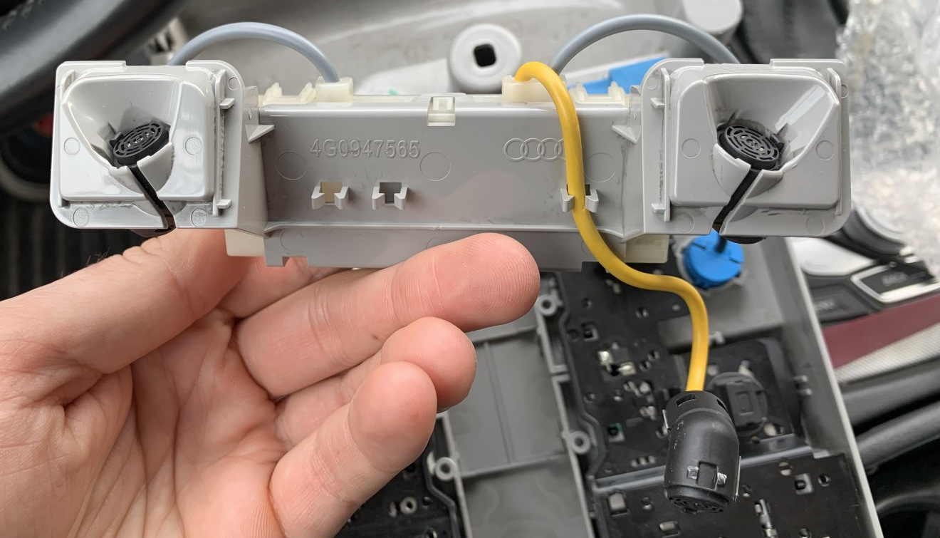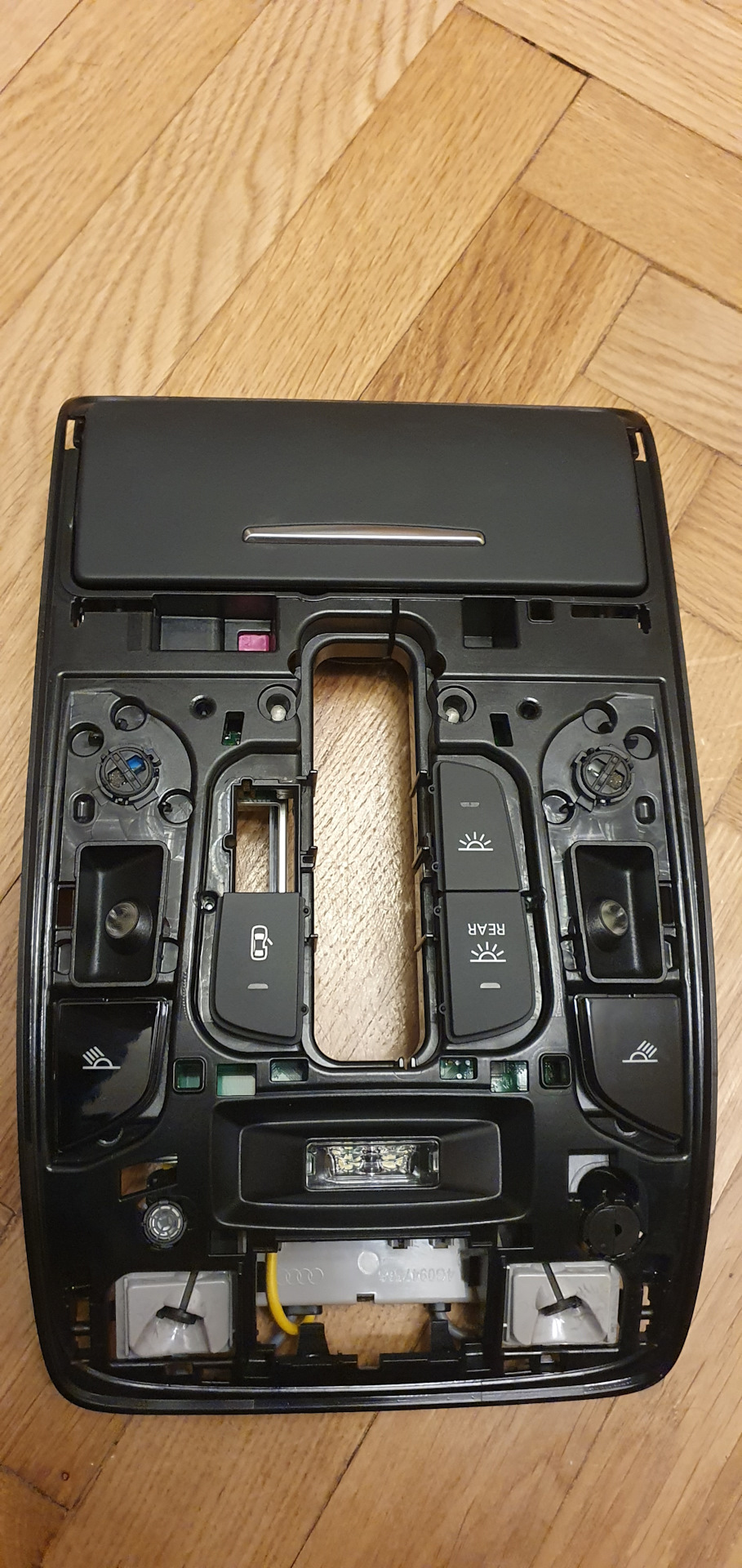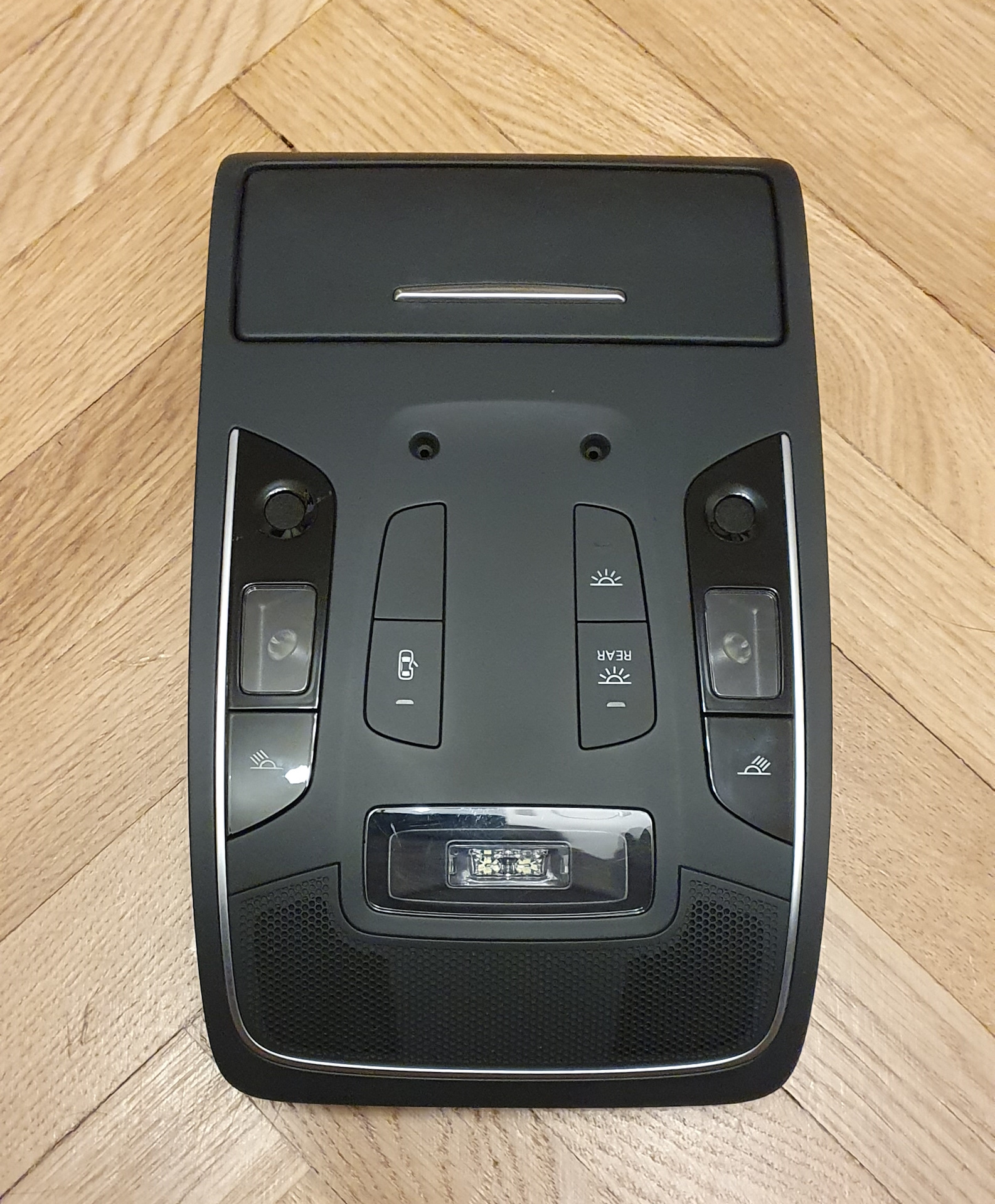 !Сразу предупрежу, ищите плафон с хомлинком (кому нужен). У кого установлена штатная сигнализация с датчиками объема, их тоже необходимо менять 4G0947565, т.к. с нашего плафона они не встают в плафон от А6 (проверено). Также нужны будут новые микрофоны для громкой связи и B&O, у кого он есть!