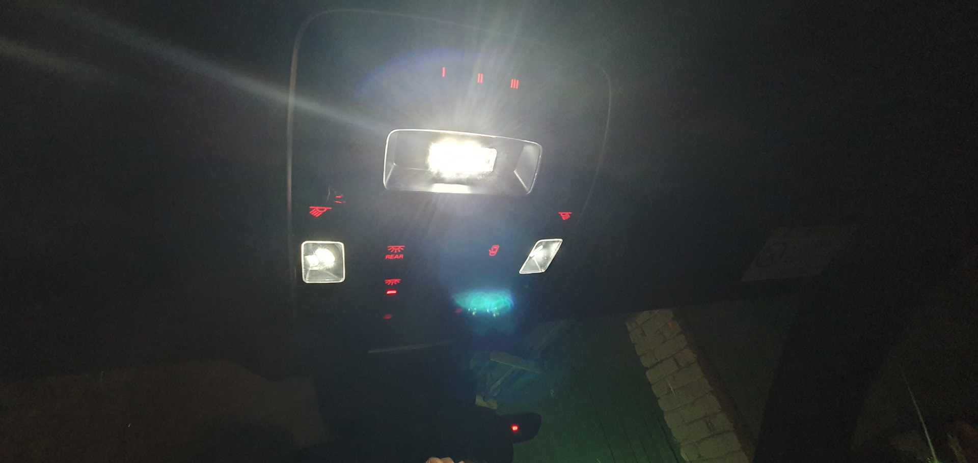 Итак, приступим. Для замены мы подбираем центральный плафон, задний плафон и светильники в солнцезащитных козырьках.