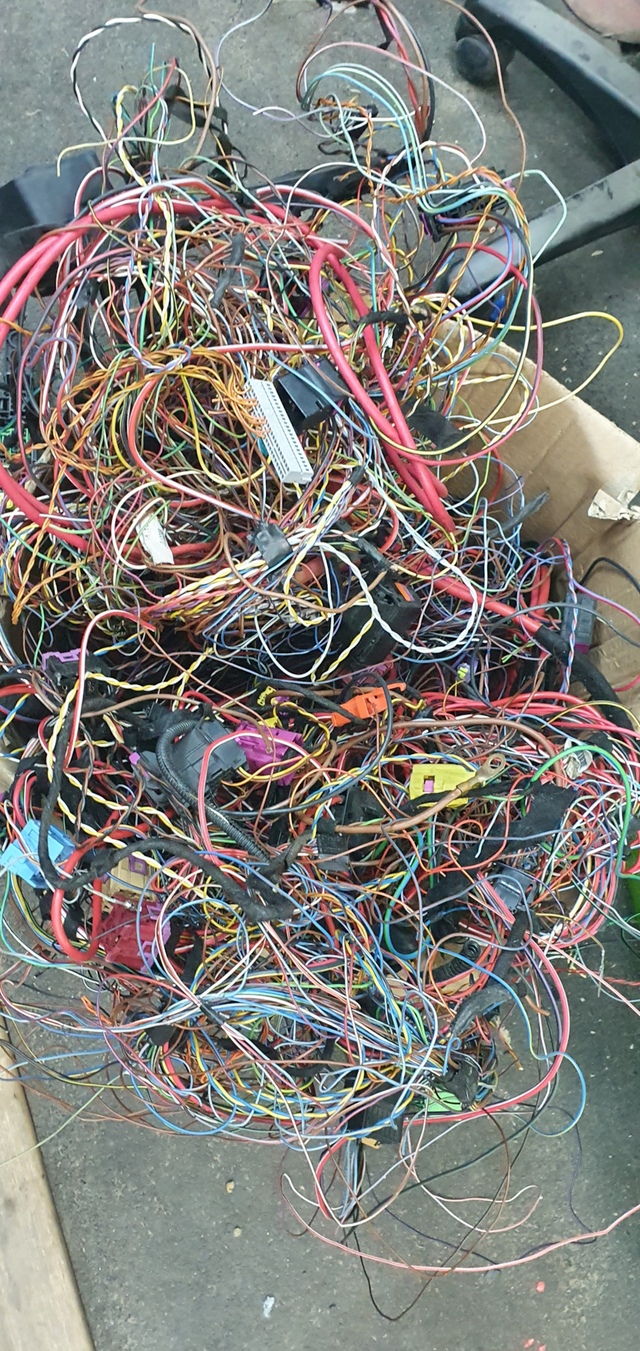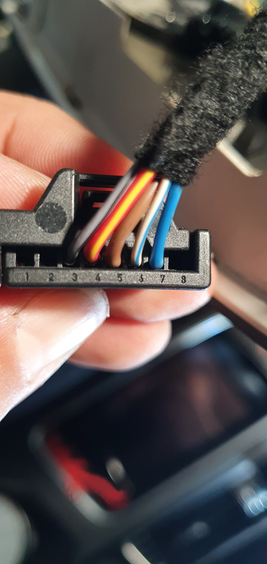 Нам необходимо будет сделать новый жгут от центрального плафона до заднего, используя черный и синий разъемы. Берем старую проводку, надергиваем 6 проводов длиной каждый по 1,2м с запасом вроде, точно не помню. Для распиновки проводов в разъемы нам понадобятся пины N90764701. Нарезаем провода, пинуем согласно схемы. В итоге заматываем жгут ворсовой изолентой, все по штату))