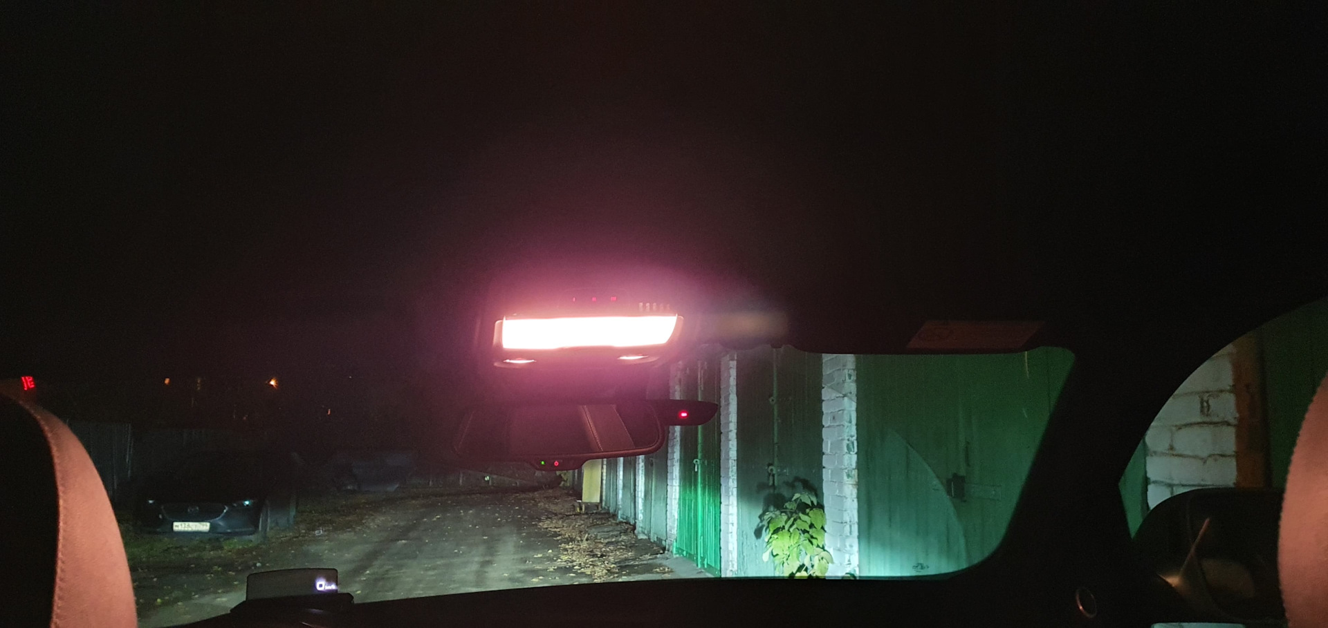 В один из дней мне написал Дмитрий с просьбой помочь с подключением видеорегистратора. Когда он ко мне приехал, мы все сделали по подключению и настройки, и как раз у него оказался установлен оригинальный плафон. Мне очень зашел приятный спокойный свет свечения плафонов. Свет направленный и похож на мягкий лунный.