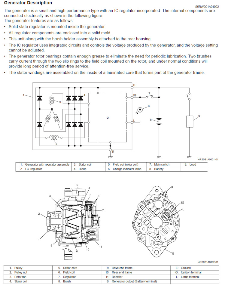 При первоначальном запуске двигателя до выхода параметров на рабочие е G-терминал находится в состоянии ON и реле-регулятор генератора работает в обычном режиме — практически как на любом автомобильном генераторе.