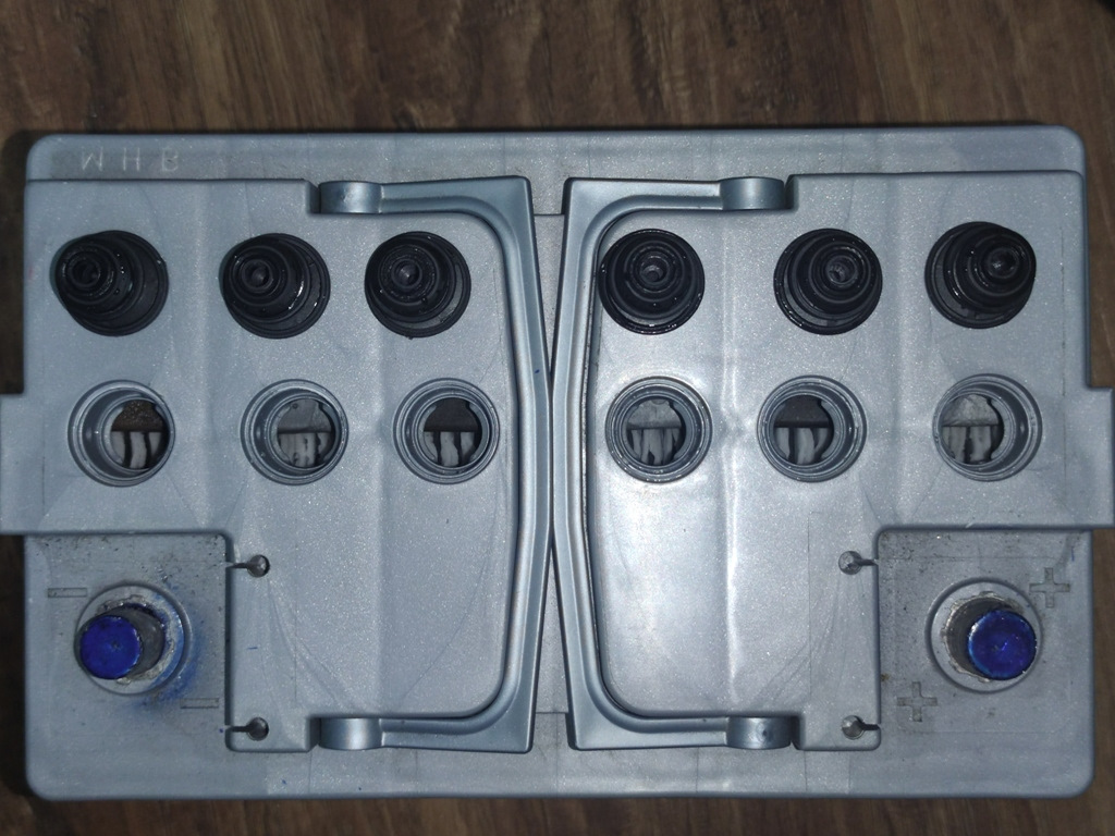 Залил примерно по 12-15 мл в каждую ячейку. Маты увлажнились. Процедуру проводил без снятия аккума с автомобиля. Так как объём воды был небольшим, процесс разряда/заряда не проводил.